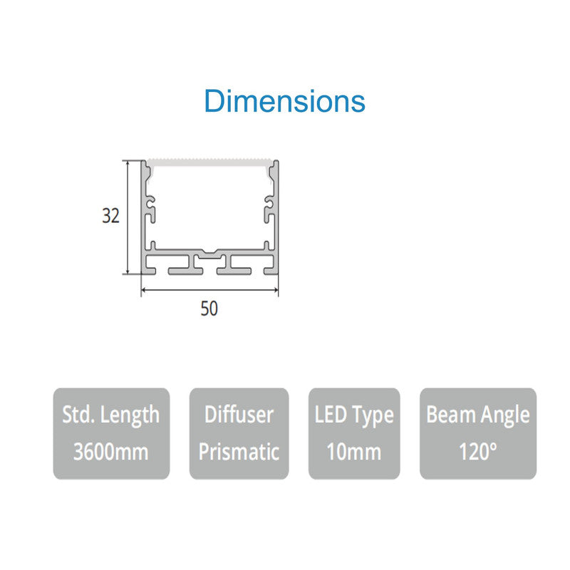 Dimensions: L:3600mm x W:50mm x H:32mm