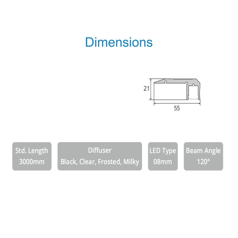 | Product dimensions in mm | W-55mmH-21mmL-3000mm |