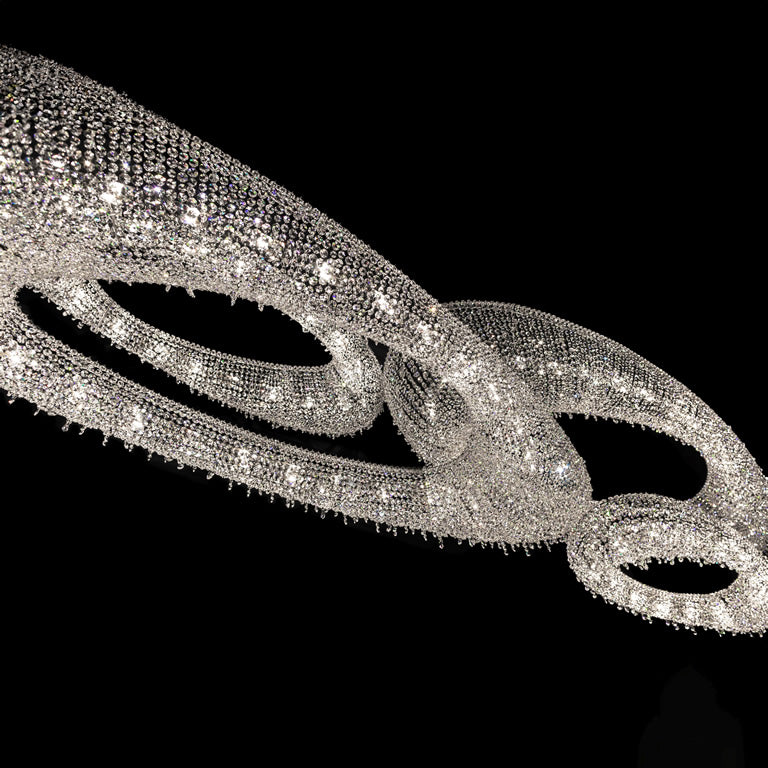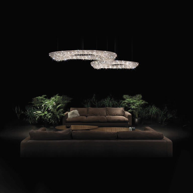 The Artica chandelier transcends conventional lighting—it's a masterfully handcrafted luminary that doubles as a three-dimensional work of art. Mannoi’s flagship design captivates with an evolving silhouette: no two cross-sections are alike, offering an ever-changing aesthetic from each vantage point. It’s less a fixture and more an immersive spatial sculpture, radiating elegance and individuality