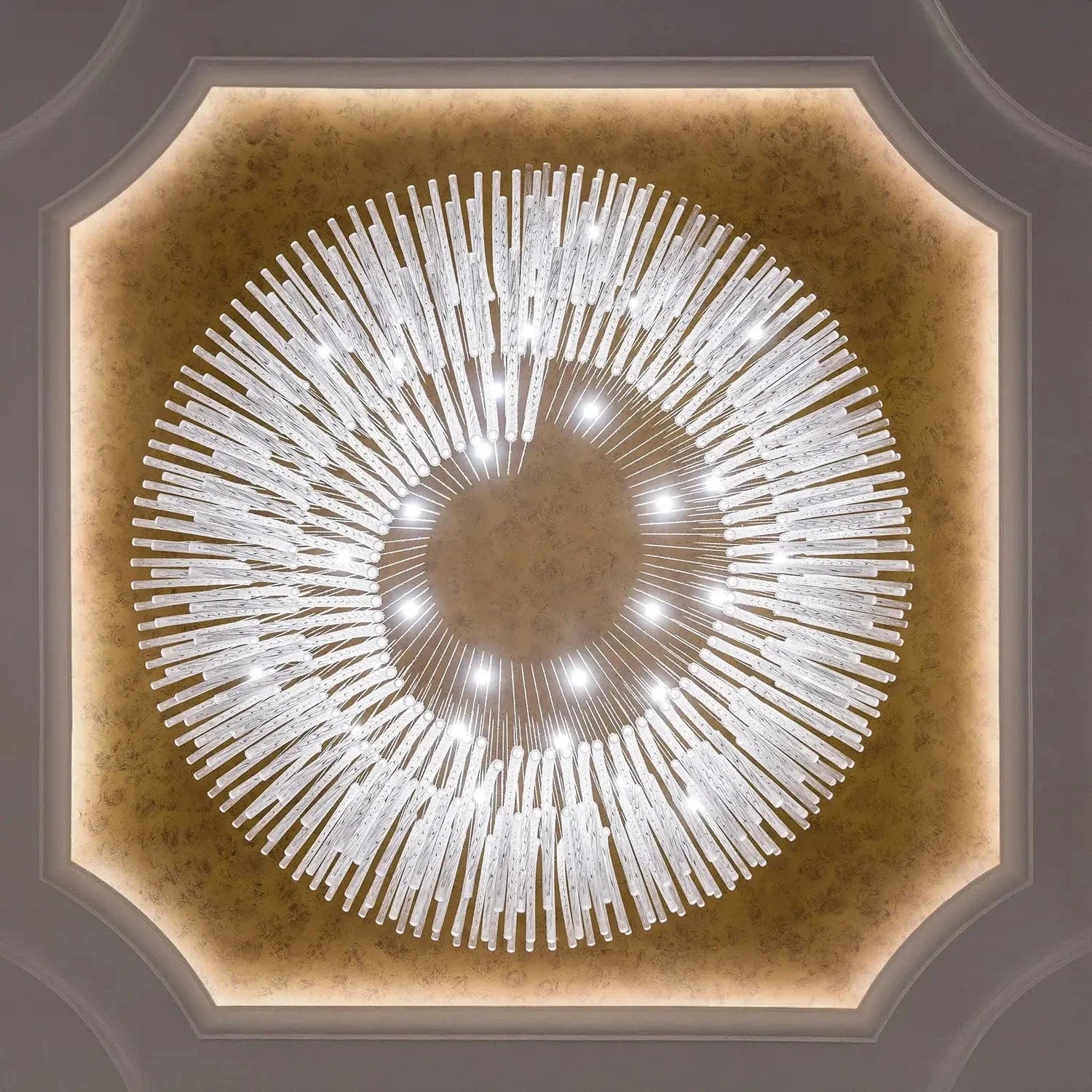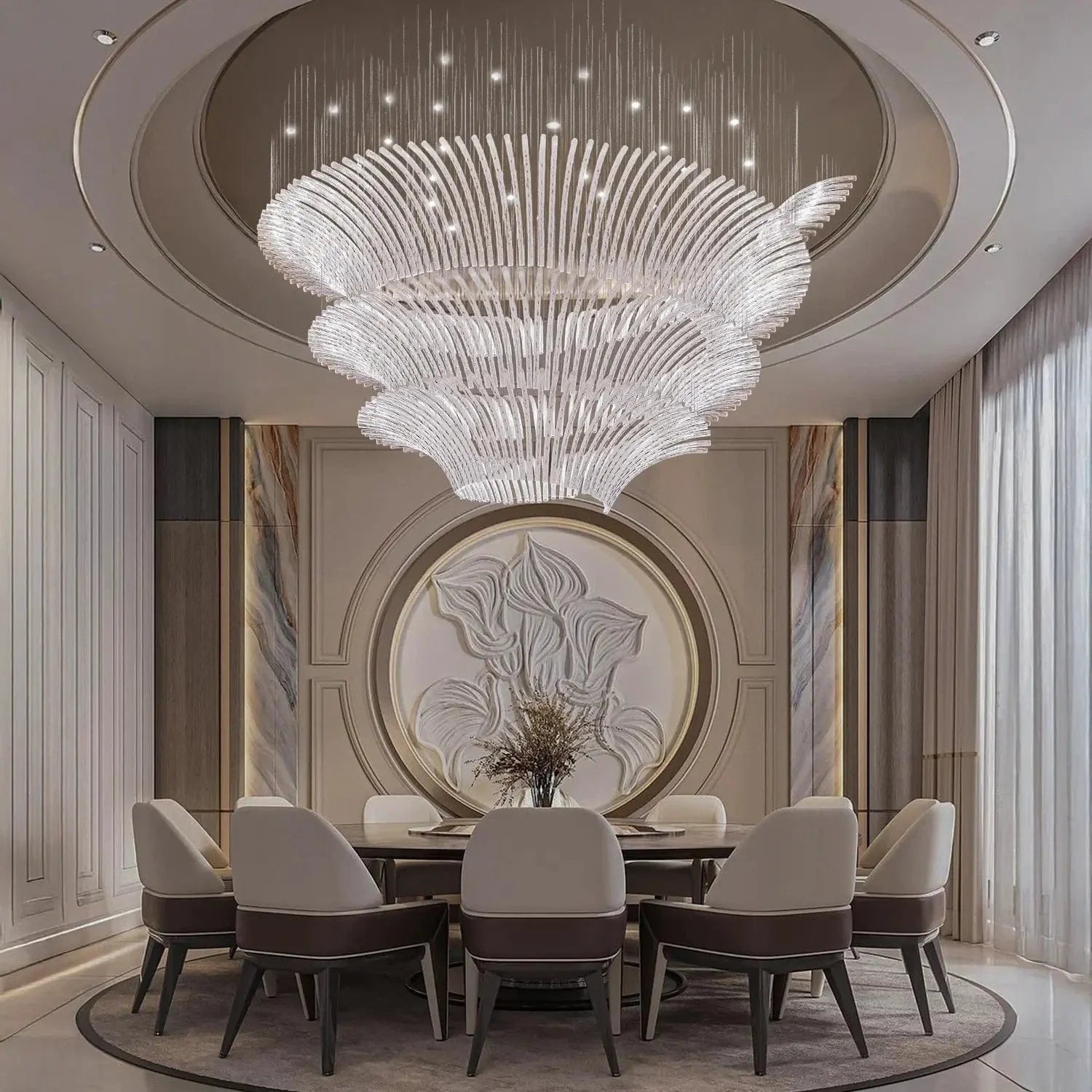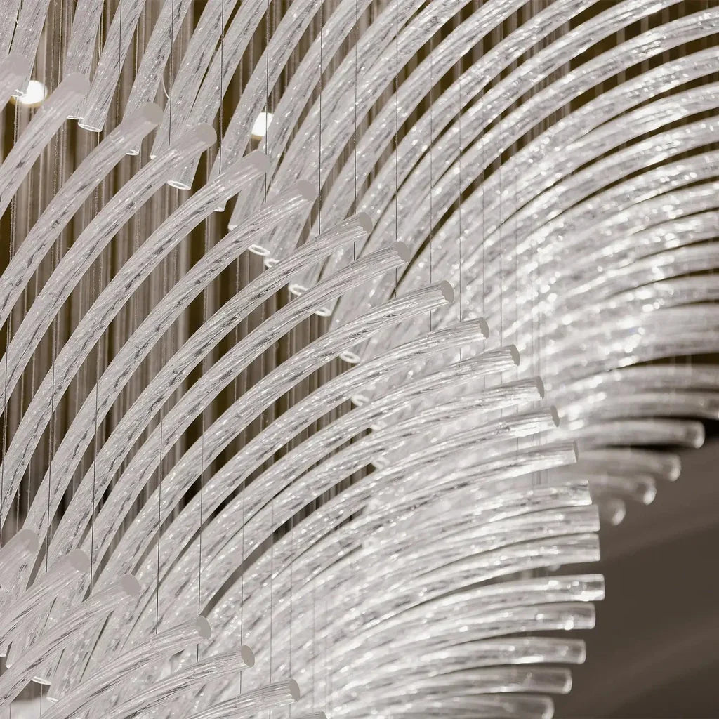 Inspired by the delicate elegance of optical strands, this chandelier brings a luminous, contemporary charm to any interior.