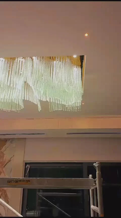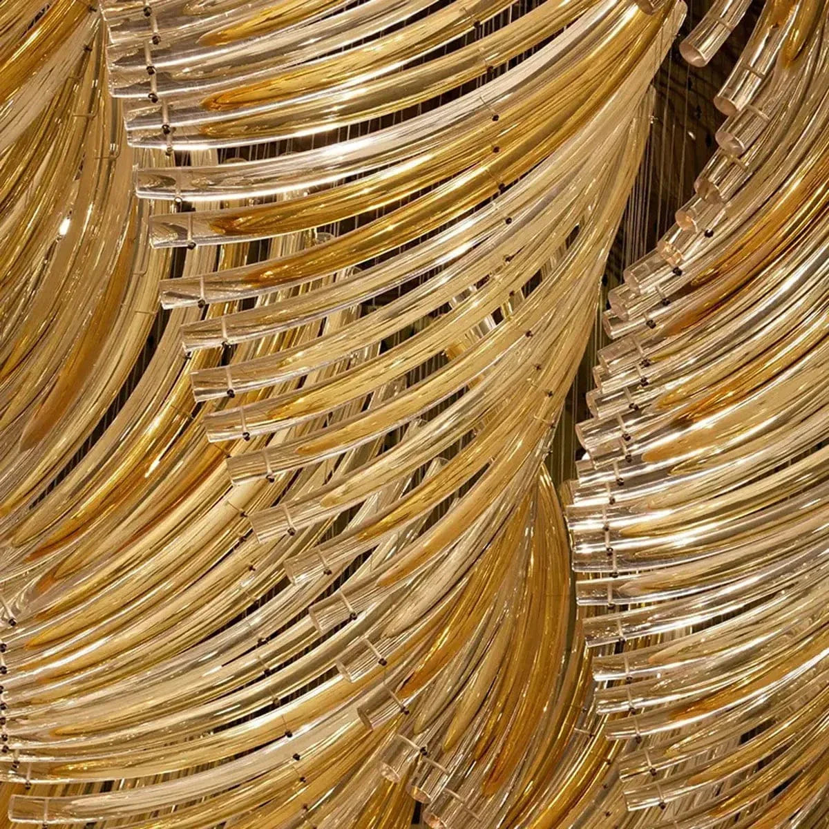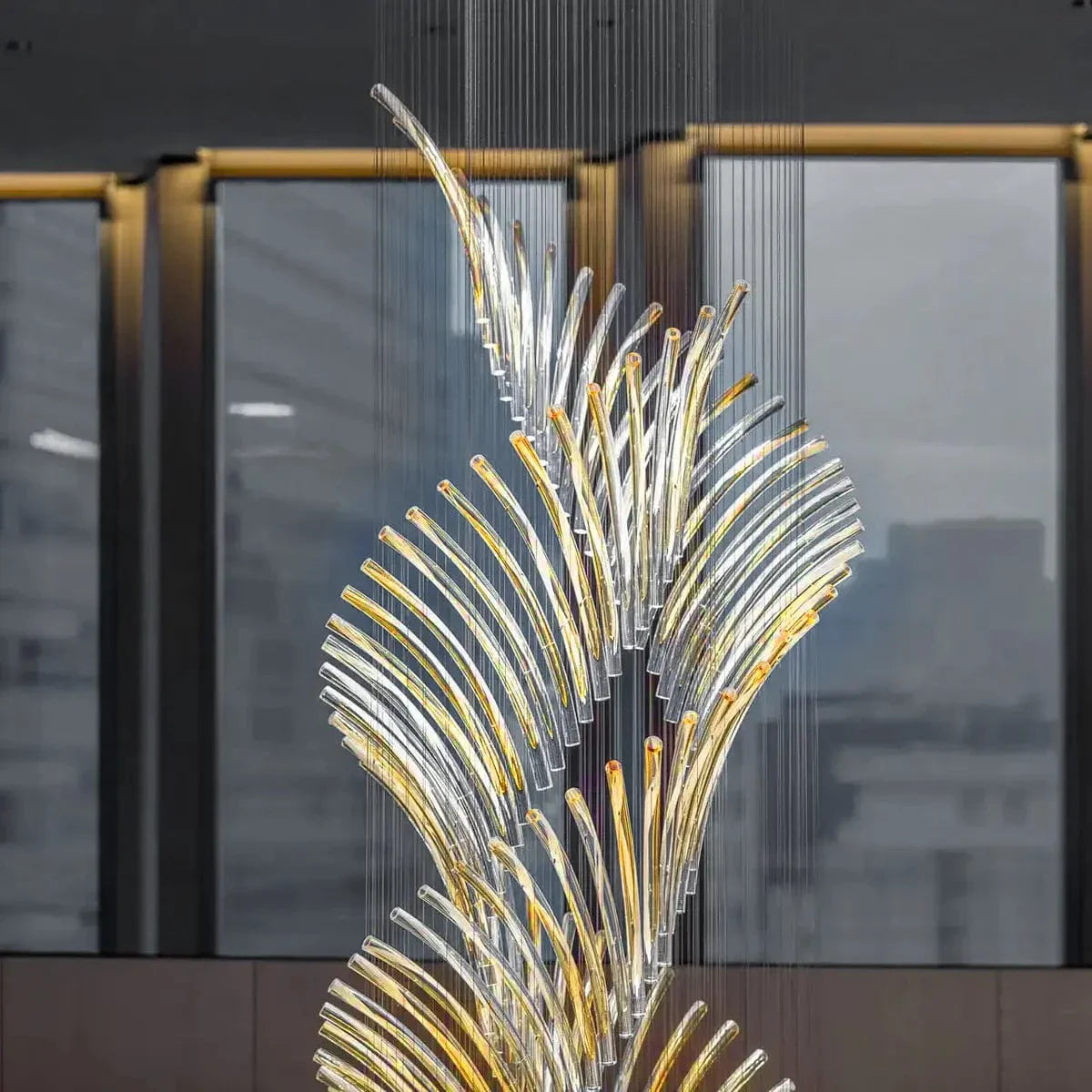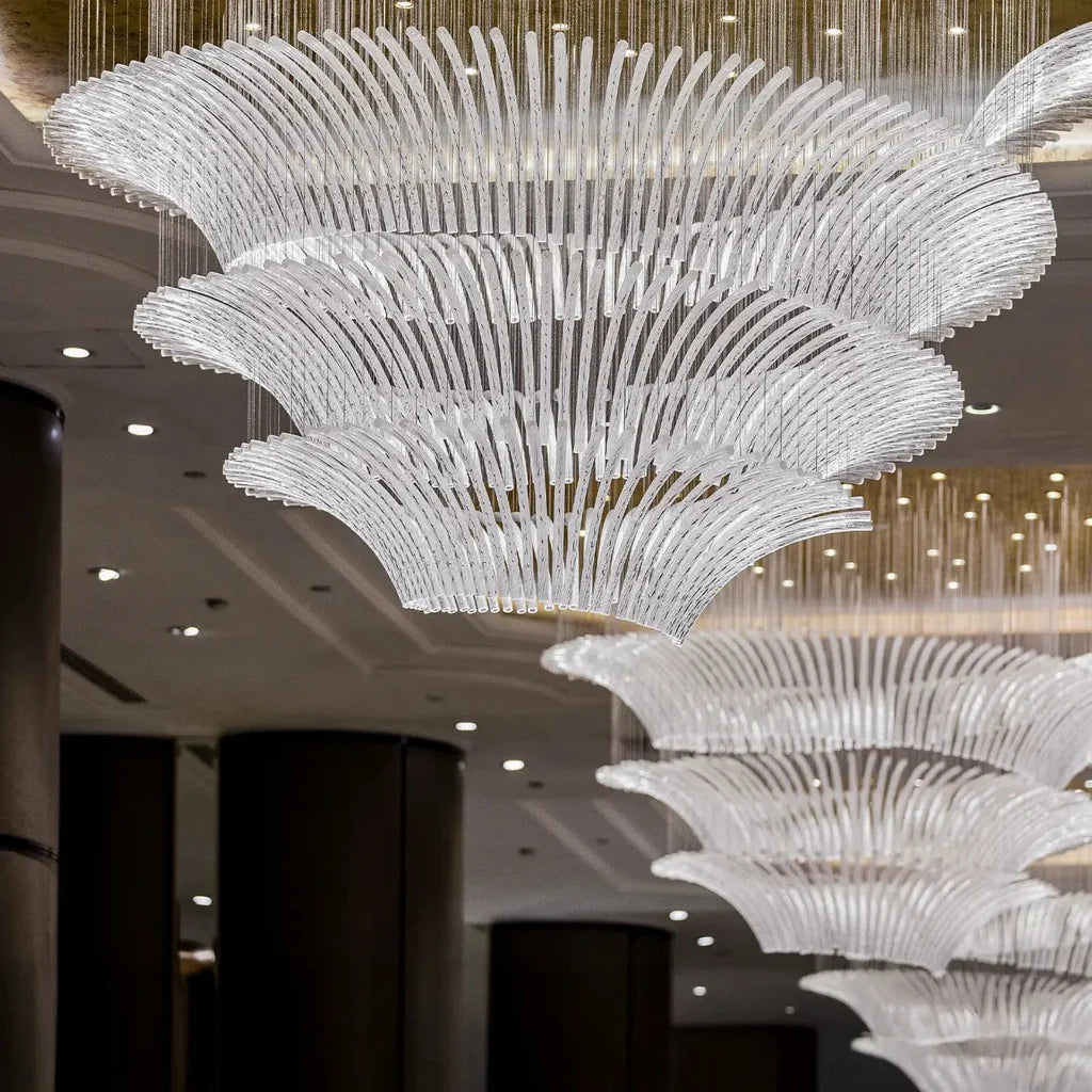 Inspired by the delicate elegance of optical strands, this chandelier brings a luminous, contemporary charm to any interior.