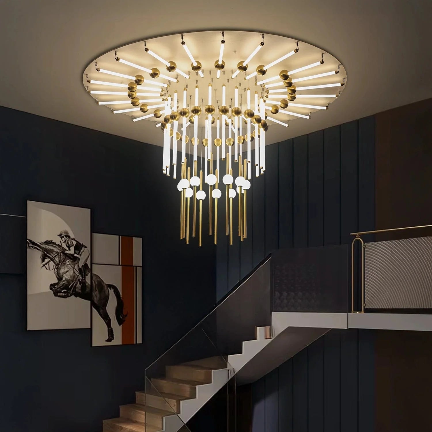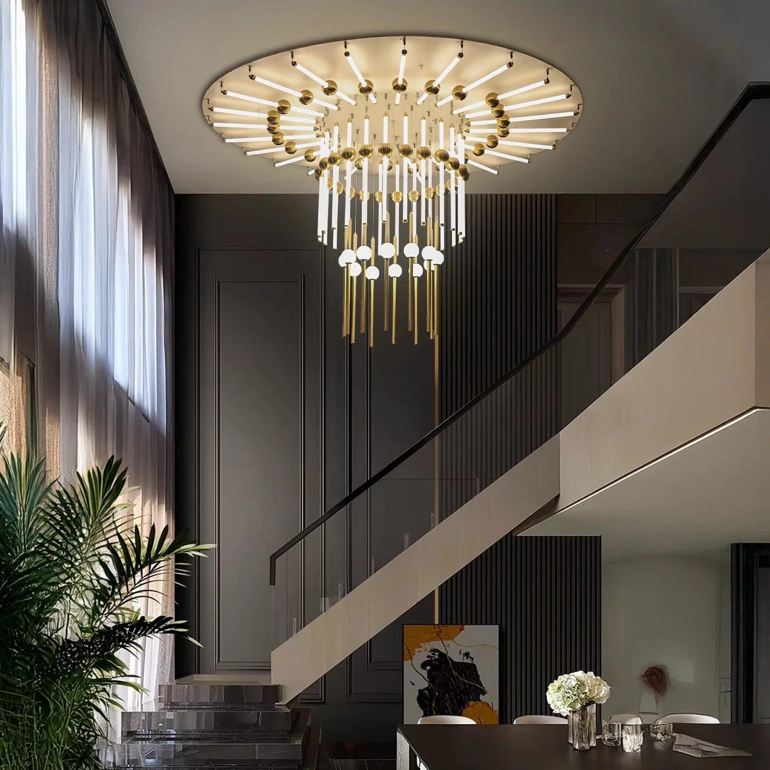 Perfect for large foyers, lobbies, staircases, and luxury living rooms where bold, artistic lighting makes the statement.