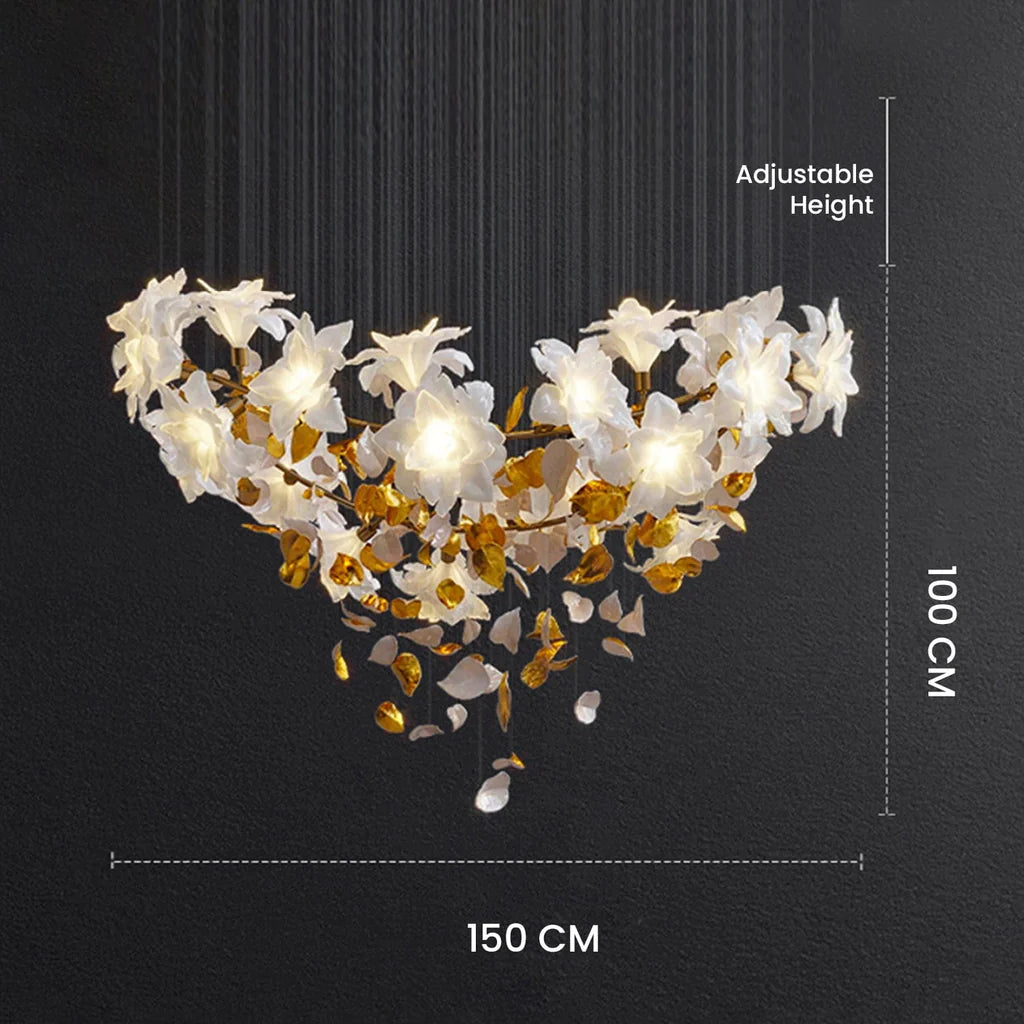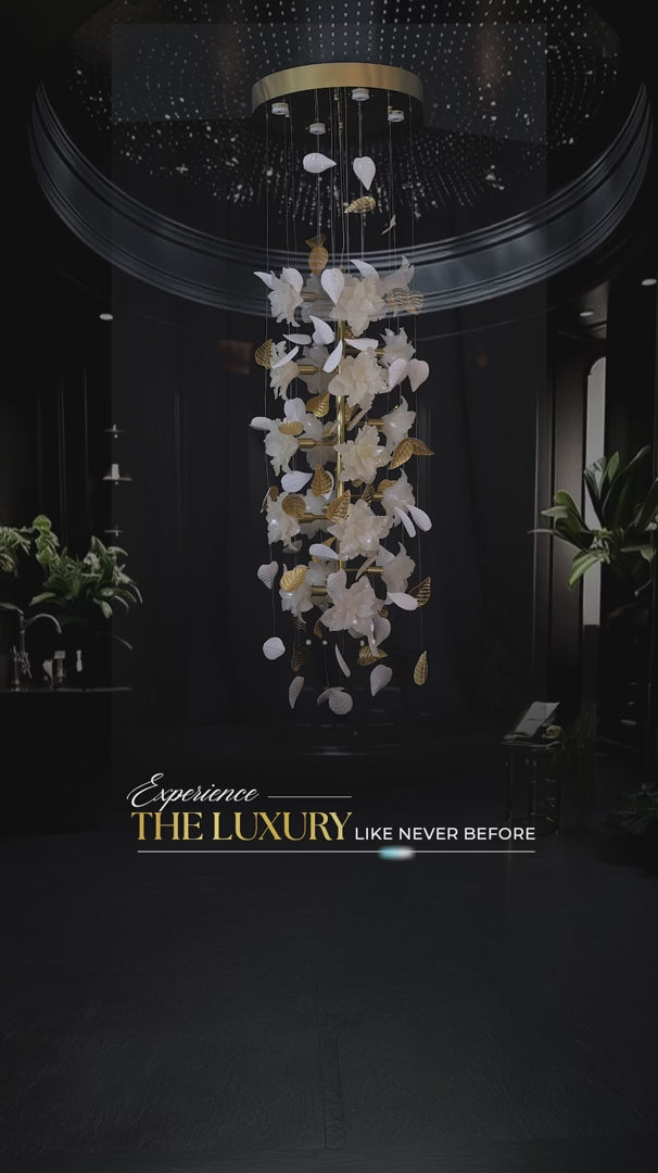 • Intricate Crystal Detailing: Featuring precision-cut 14mm crystal accents arranged in a graceful lotus-inspired form, this chandelier adds depth and brilliance to any setting.