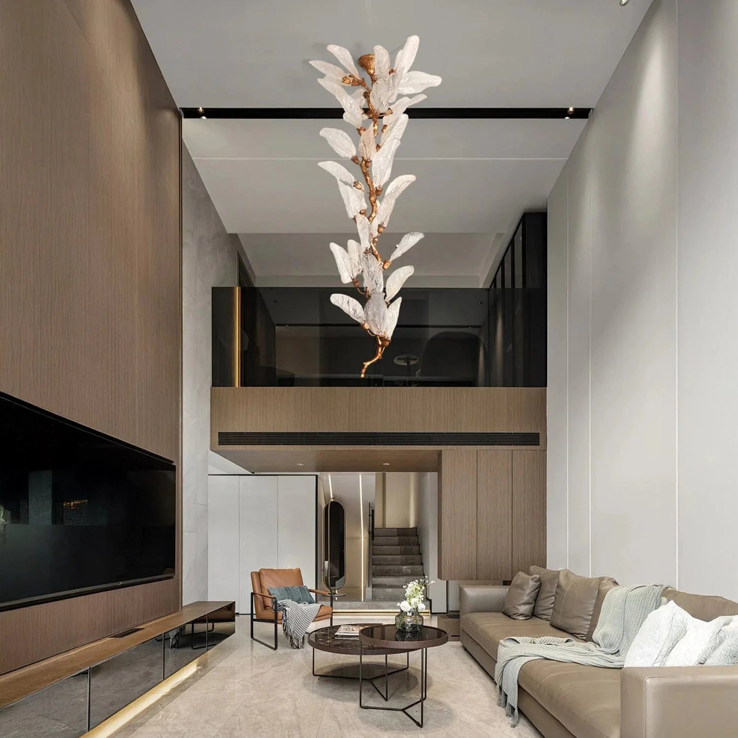 Bring the beauty of nature indoors with this botanical-inspired chandelier, designed with delicately crafted glass leaves that exude elegance and charm. Built on a sturdy aluminum frame and adorned with premium heavy glass pendants, it showcases a refined and luxurious finish.