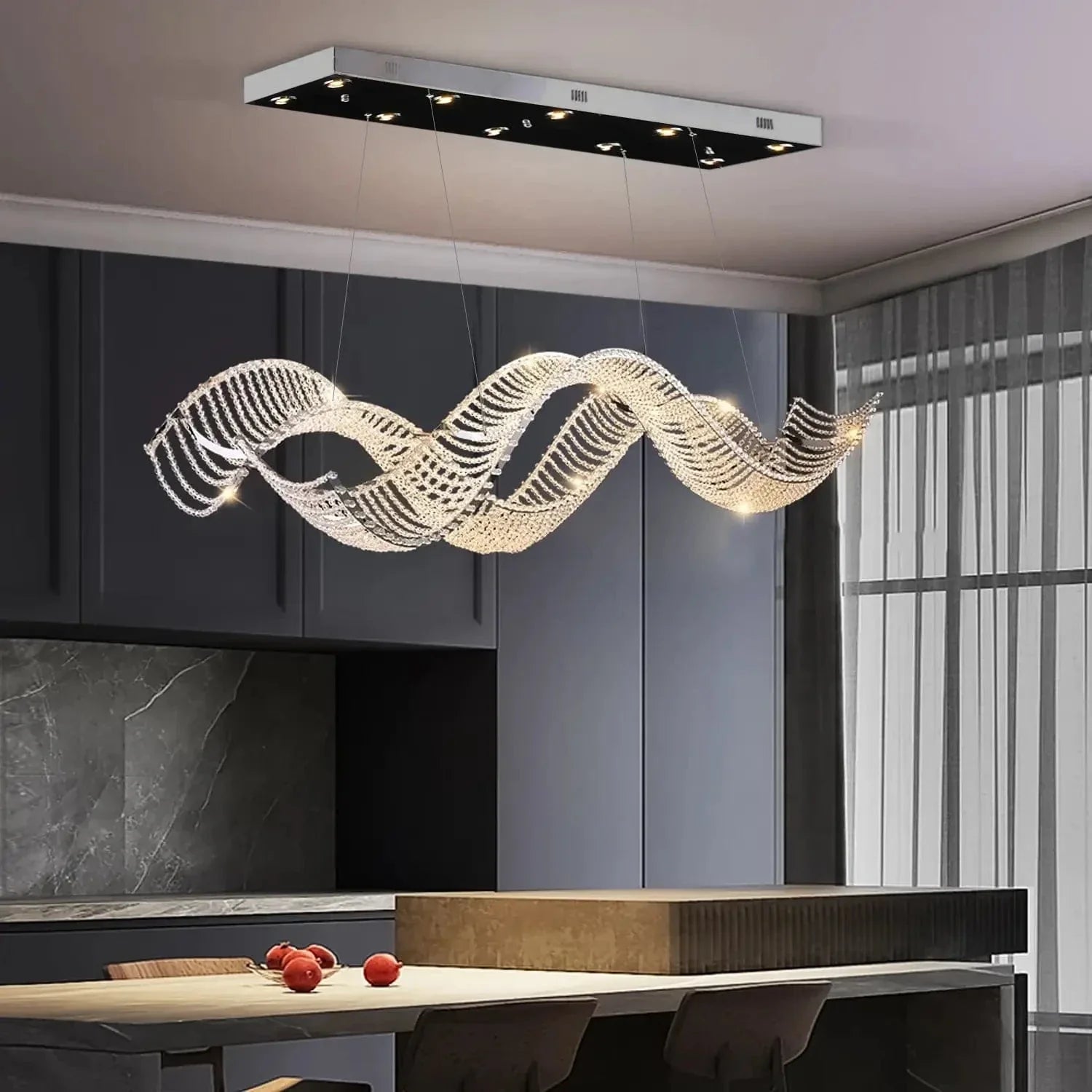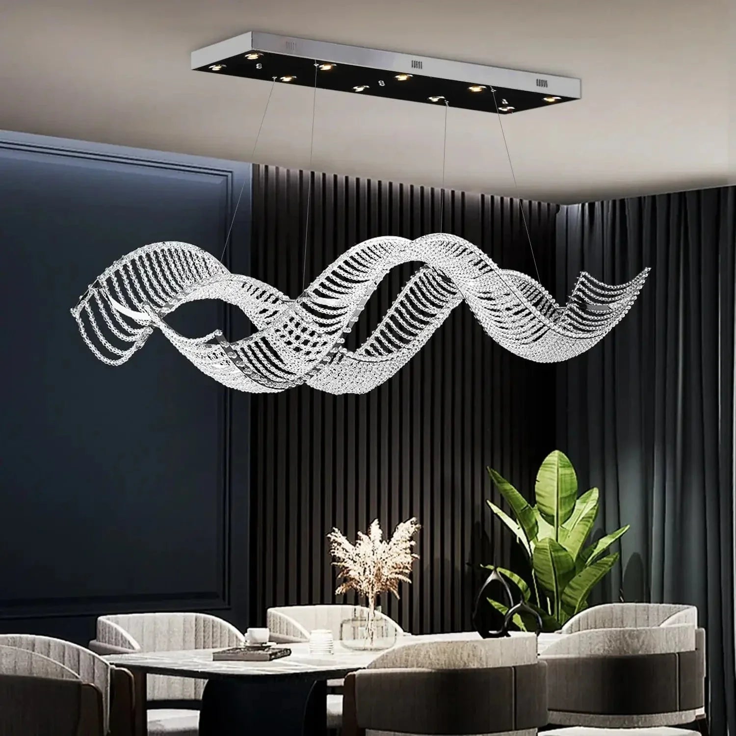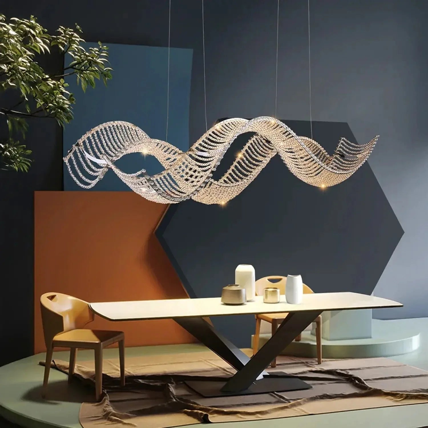 Unique wave-inspired crystal chandelier for luxury dining rooms