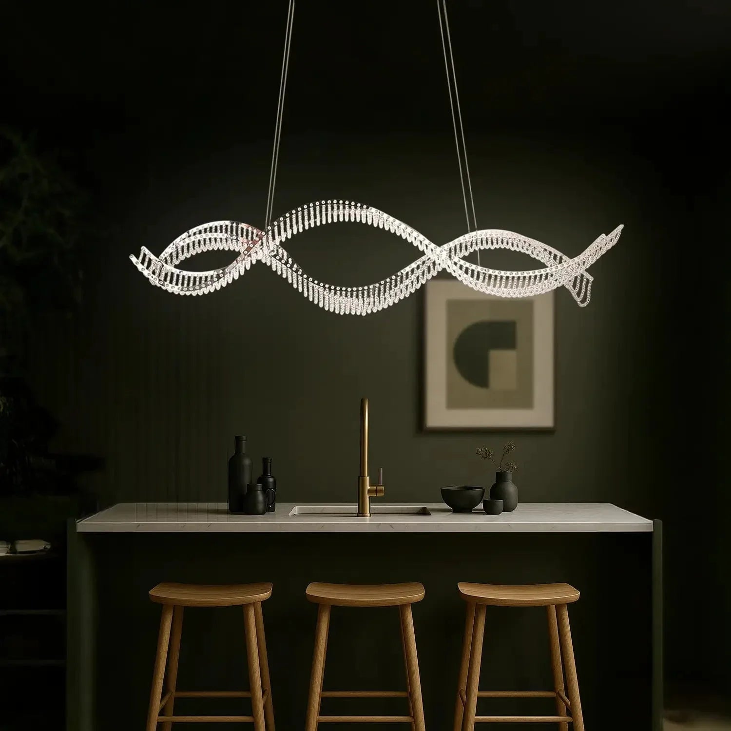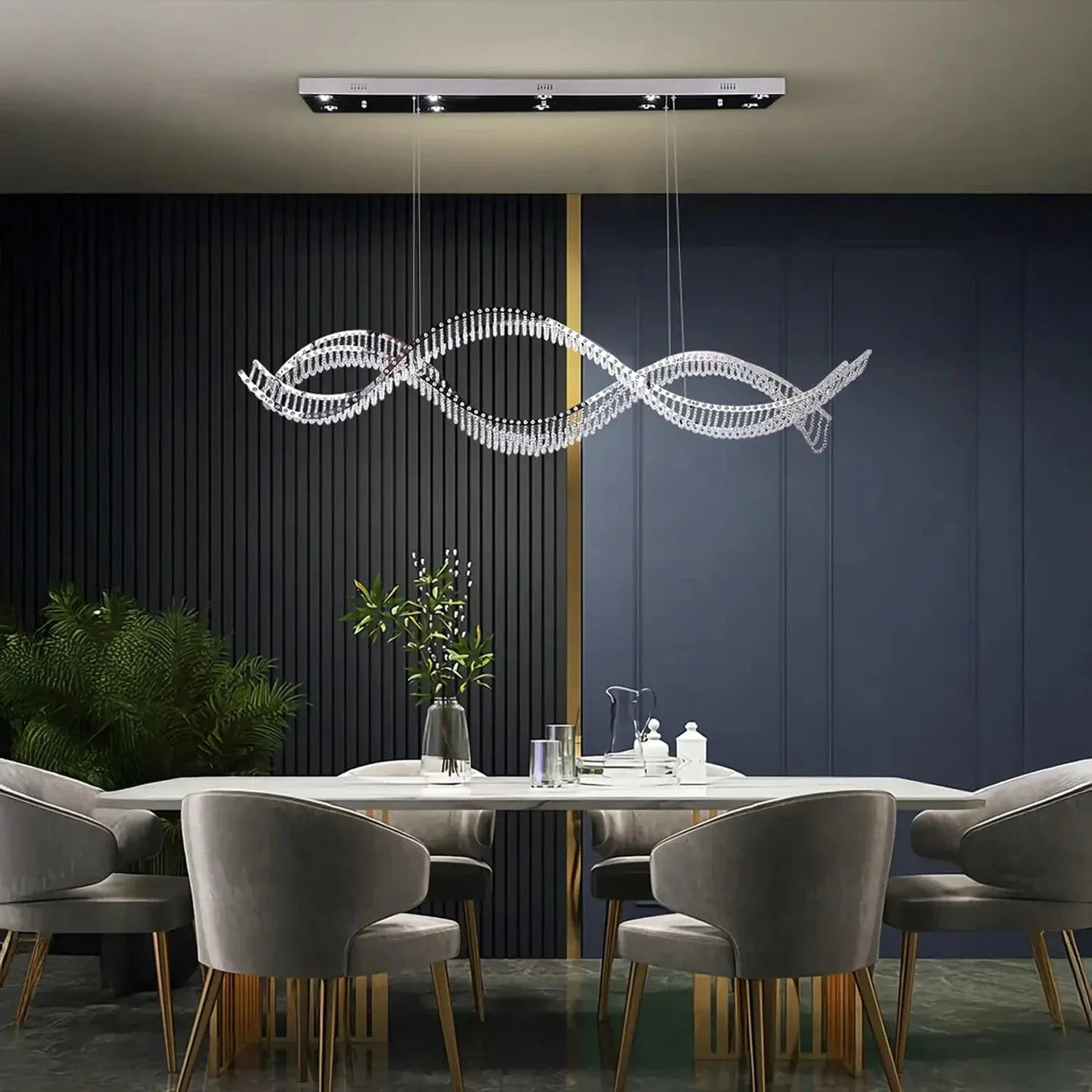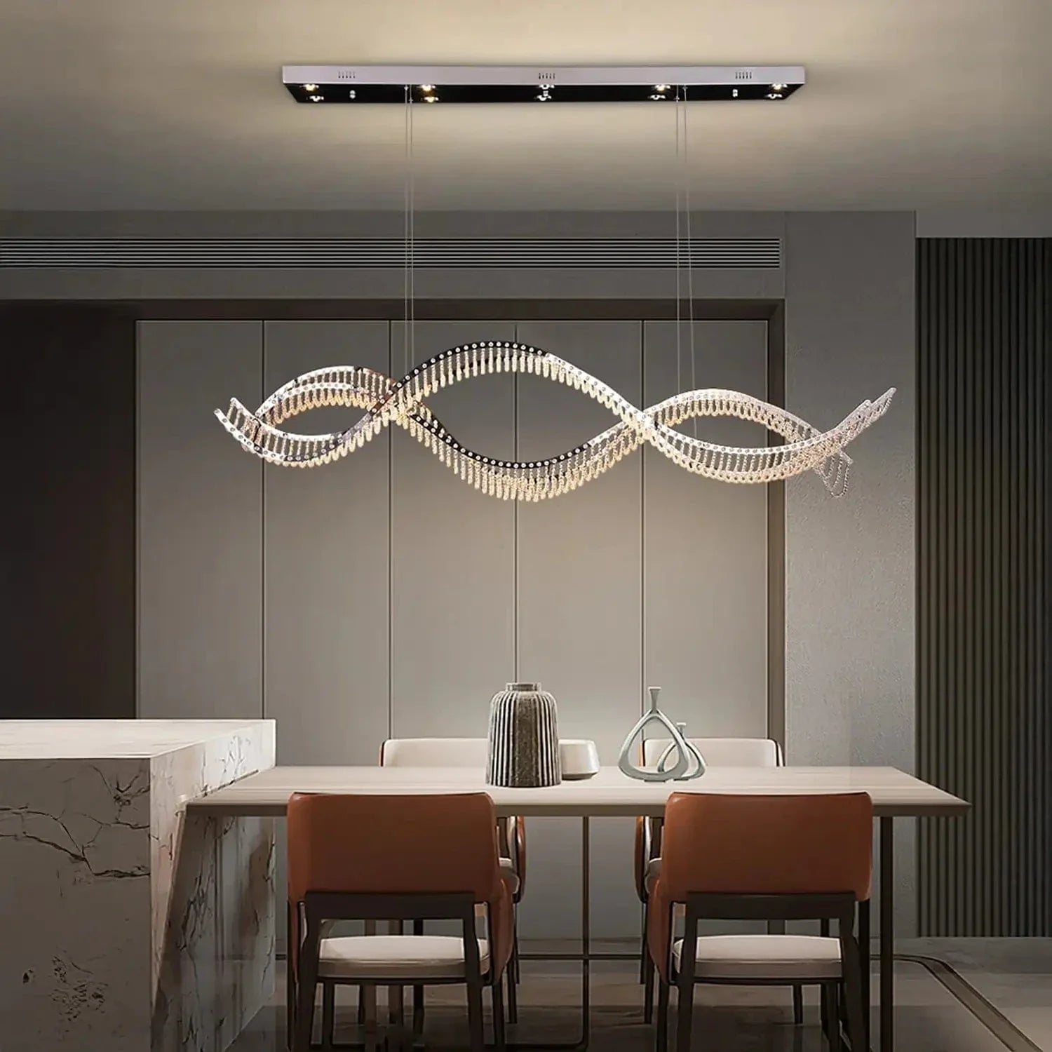Unique wave-inspired crystal chandelier for luxury dining rooms