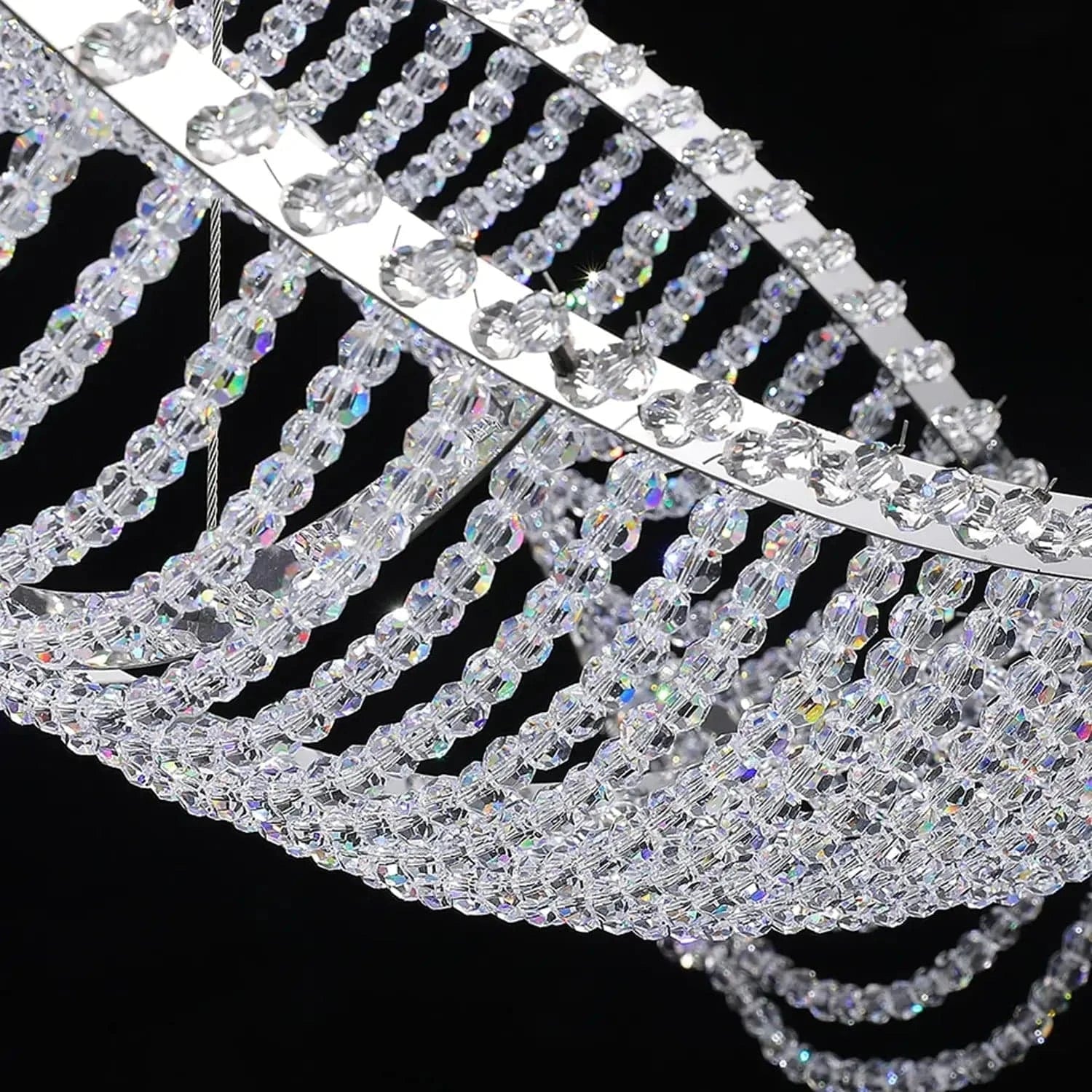 Introduce timeless elegance to your interiors with the Seranova Wave Crystal Chandelier, a modern masterpiece crafted for luxury dining rooms and lounges. Designed with a flowing wave-shaped silhouette and adorned with 14 mm precision-cut crystal buds, it sparkles with captivating brilliance. Built on a robust 18-gauge stainless steel frame and powered by integrated COB LEDs in a warm 3000K glow, this chandelier creates a welcoming ambiance while offering long-lasting durability. Available in two statement sizes, it’s the perfect centerpiece for upscale dining tables, lounges, and contemporary living spaces.
