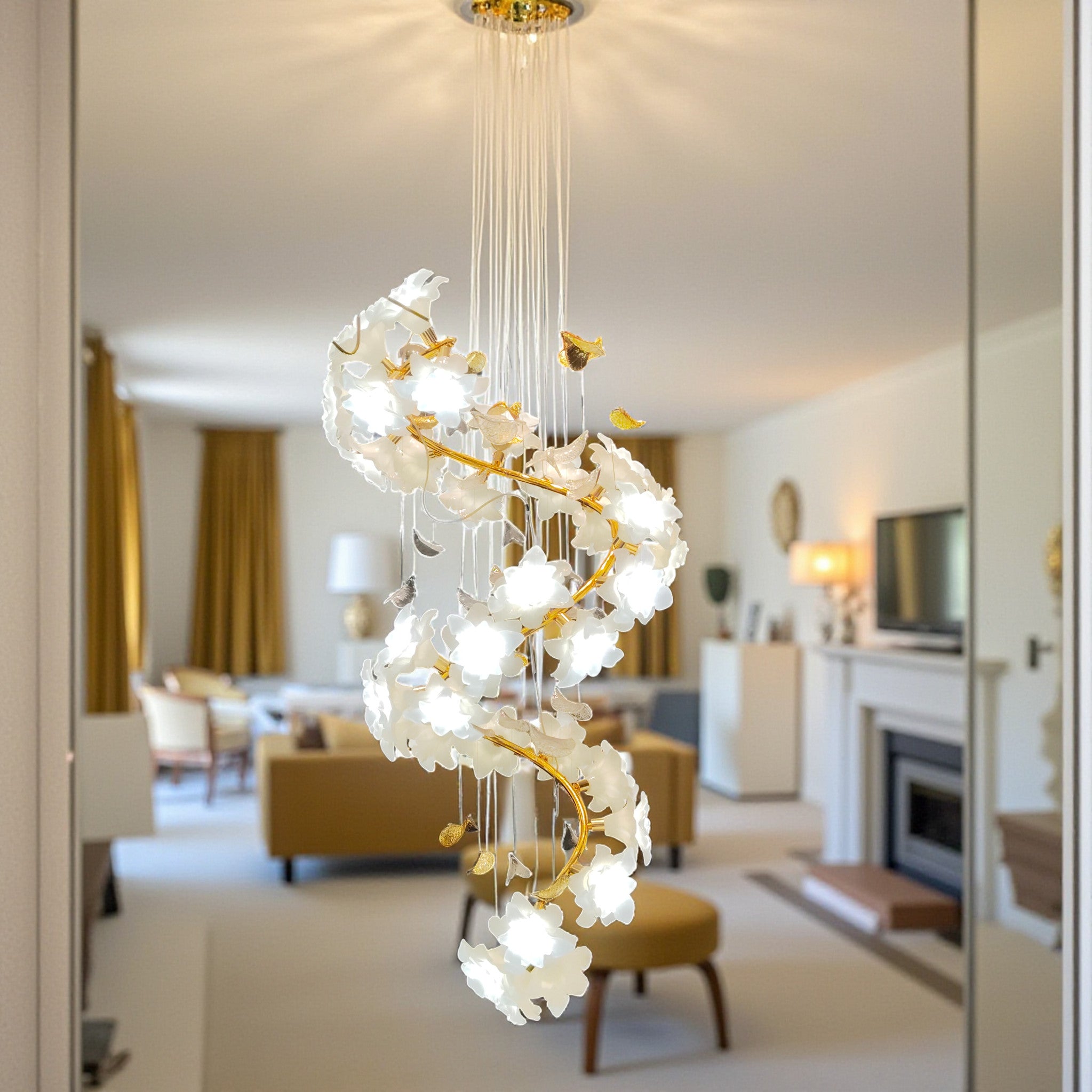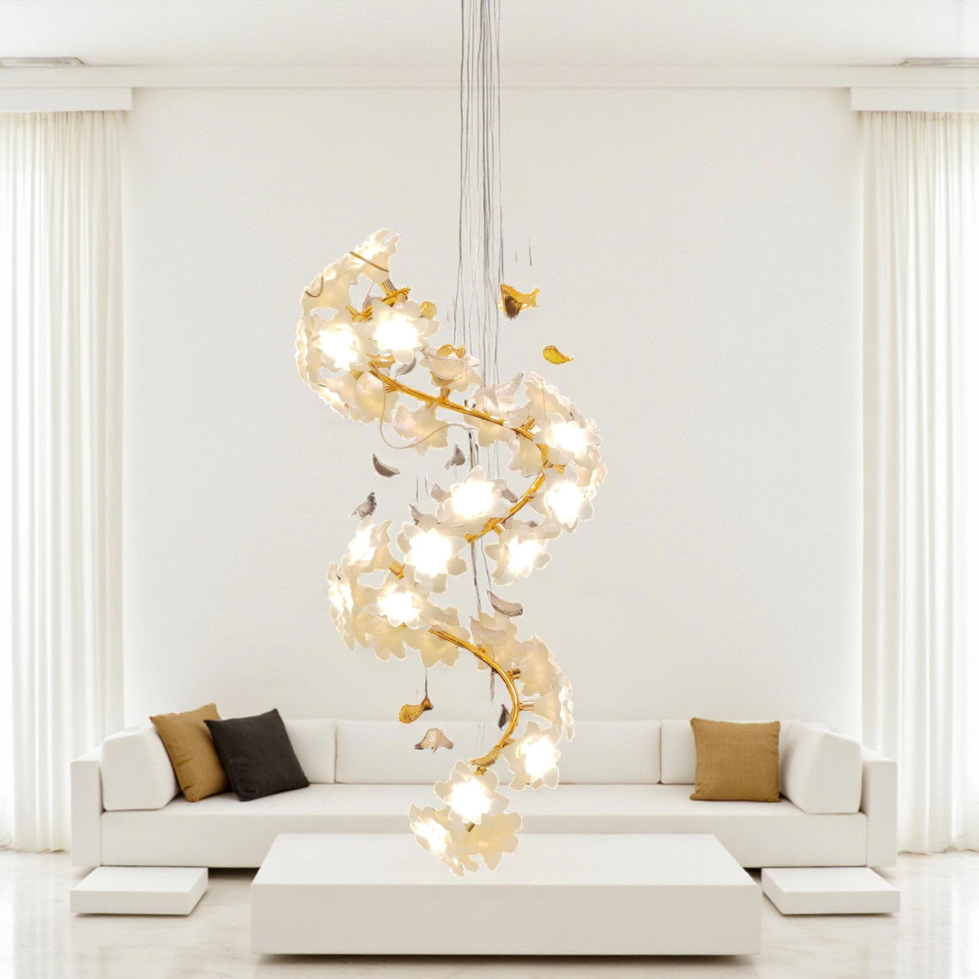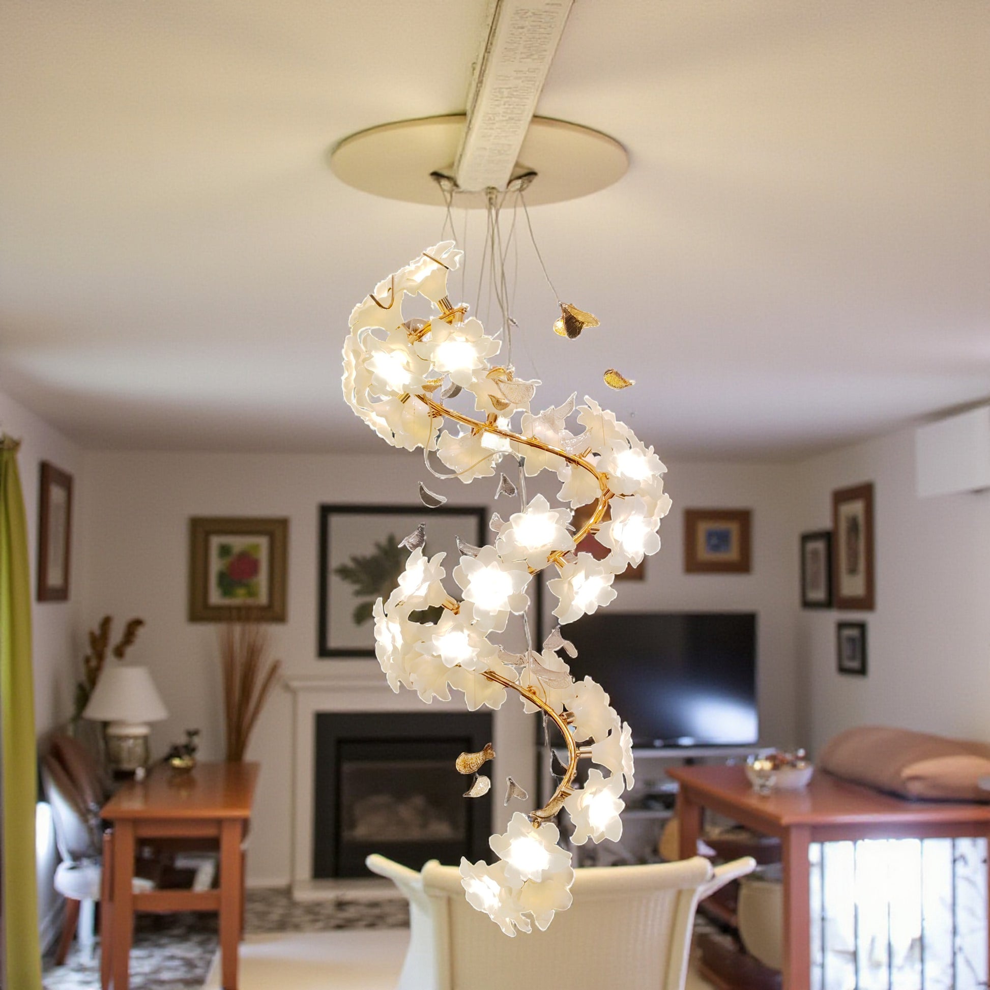 Floravine Spiral Chandelier – Handcrafted Floral Glass Hanging Light by Eliante