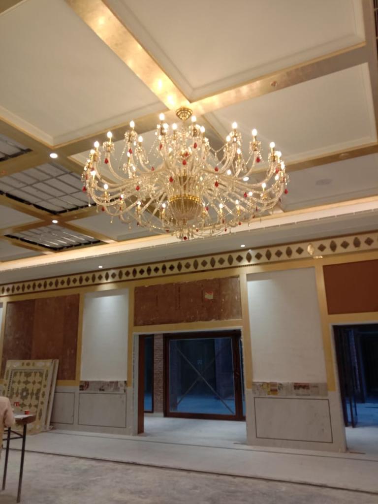 Crafted for large spaces and high ceilings, this masterpiece spreads light evenly across the hall, creating a rich, immersive ambience suitable for celebrations, events, and formal gatherings. It’s not just lighting—it's a statement of luxury.