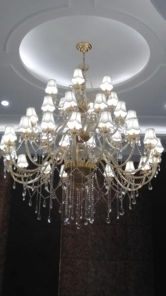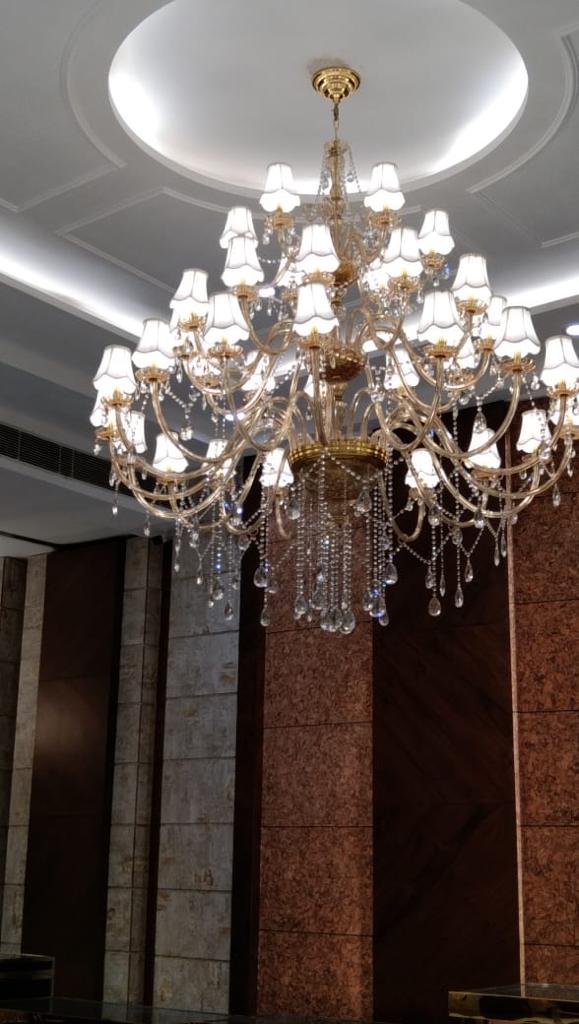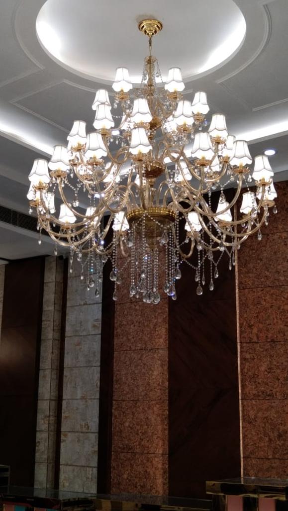 Transform your space with this Royal Grandeur Gold Crystal Chandelier, crafted to bring unmatched luxury and elegance to any interior. Designed especially for banquet halls, hotels, farmhouses, wedding venues, double-height lobbies, showrooms, and premium residences, this statement chandelier features: