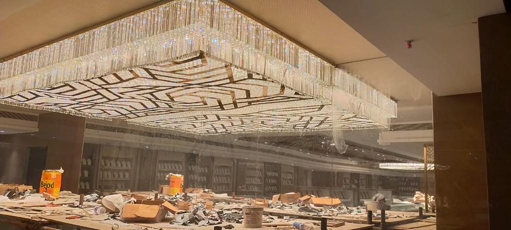 Each chandelier is custom-manufactured to order, allowing complete flexibility in size, crystal density, lighting layout, and metal finishes. The internal lighting system is engineered for uniform illumination, ensuring both decorative appeal and functional brightness across large areas.