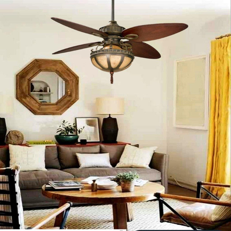 JS-LXR CLassic AC 60" Chandelier Fan FA0068 Bronze Body & 4 Walnut Solid Wooden Blades