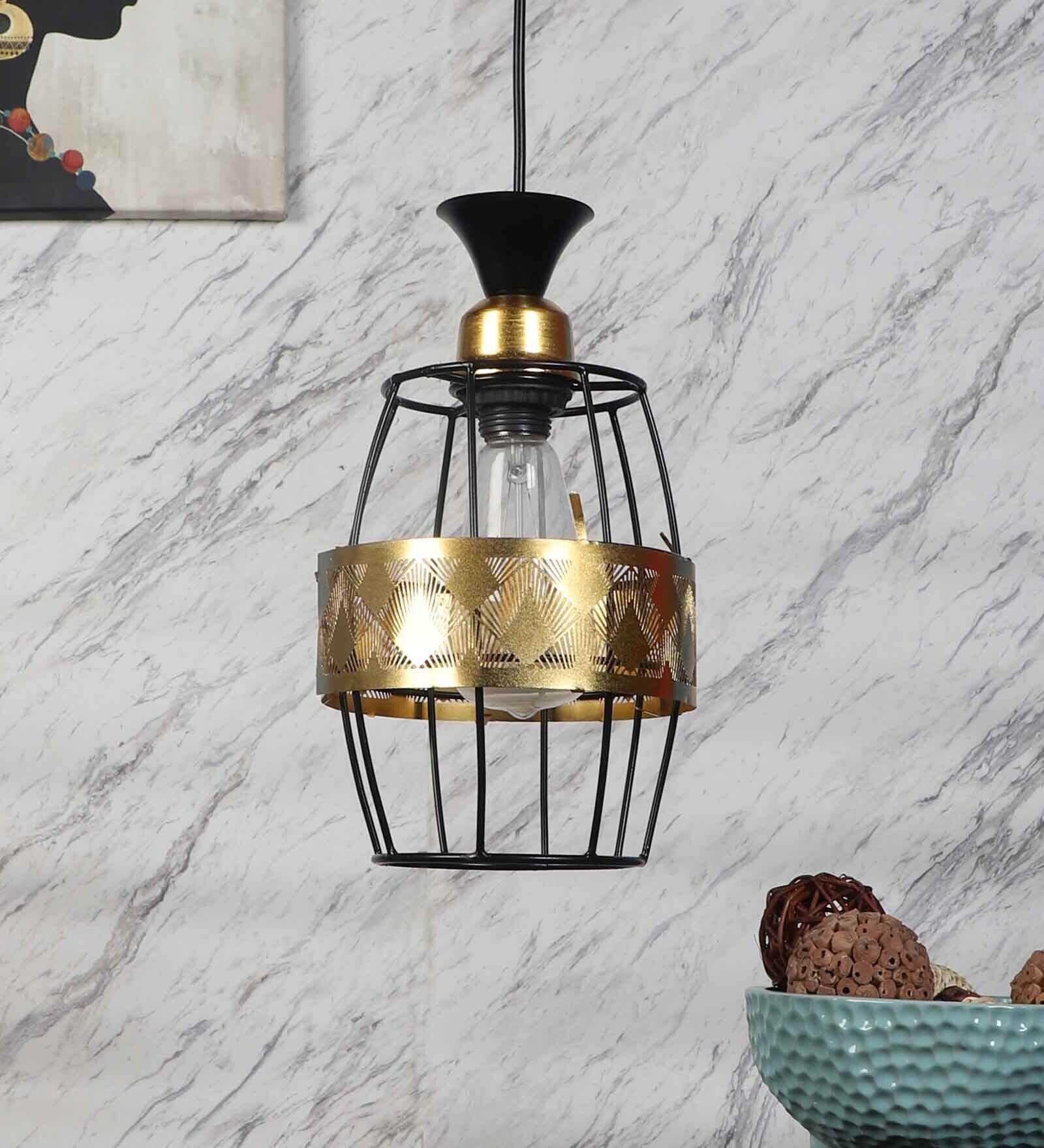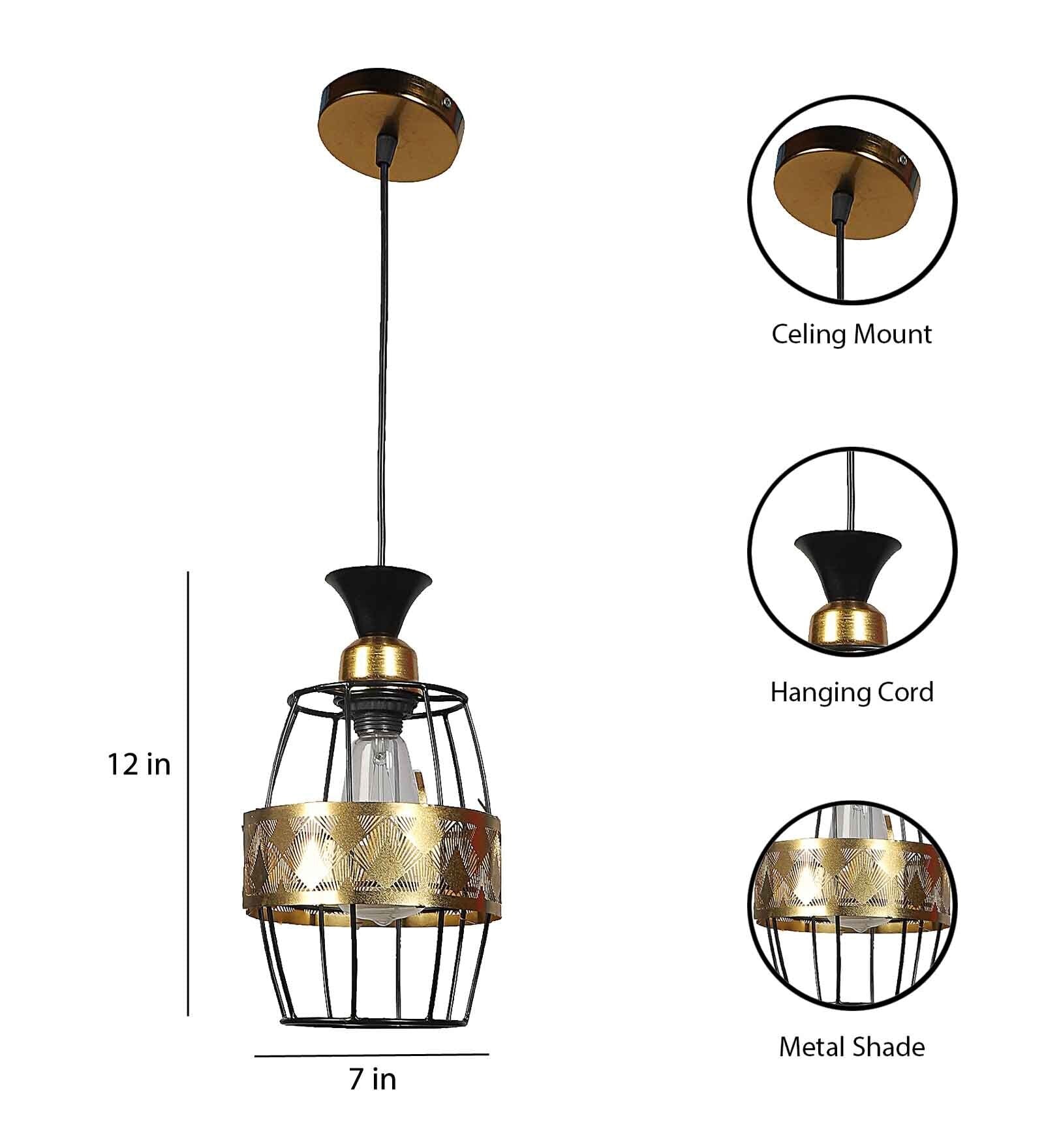 Eliante by Jainsons LightsZaal Black & Gold Iron Hanging Light | MN-104-1LP | Included Bulb | Eliante by Jainsons Lights