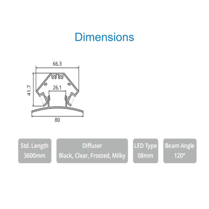 Dimensions: L:3600mm x W:80mm x H:41.7mm