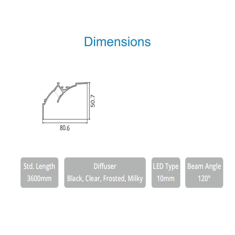 Dimensions: L:3600mm x W:80.6mm x H:52.7mm