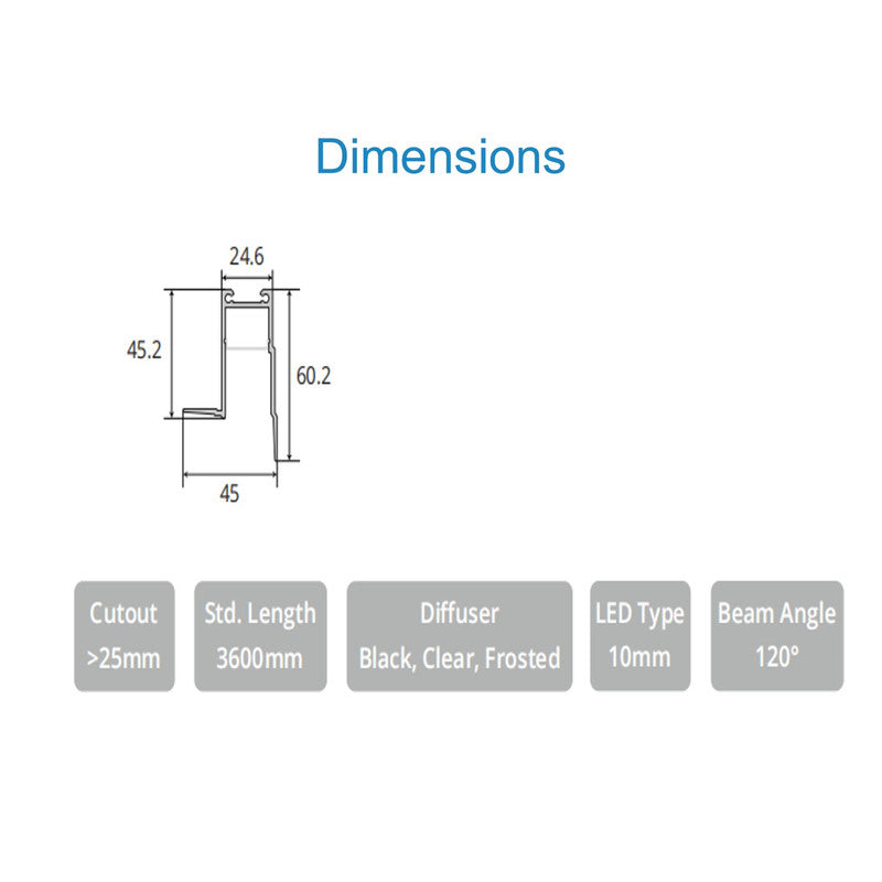 | Product dimensions in mm | W-25mmH-45mmL-3600mm |