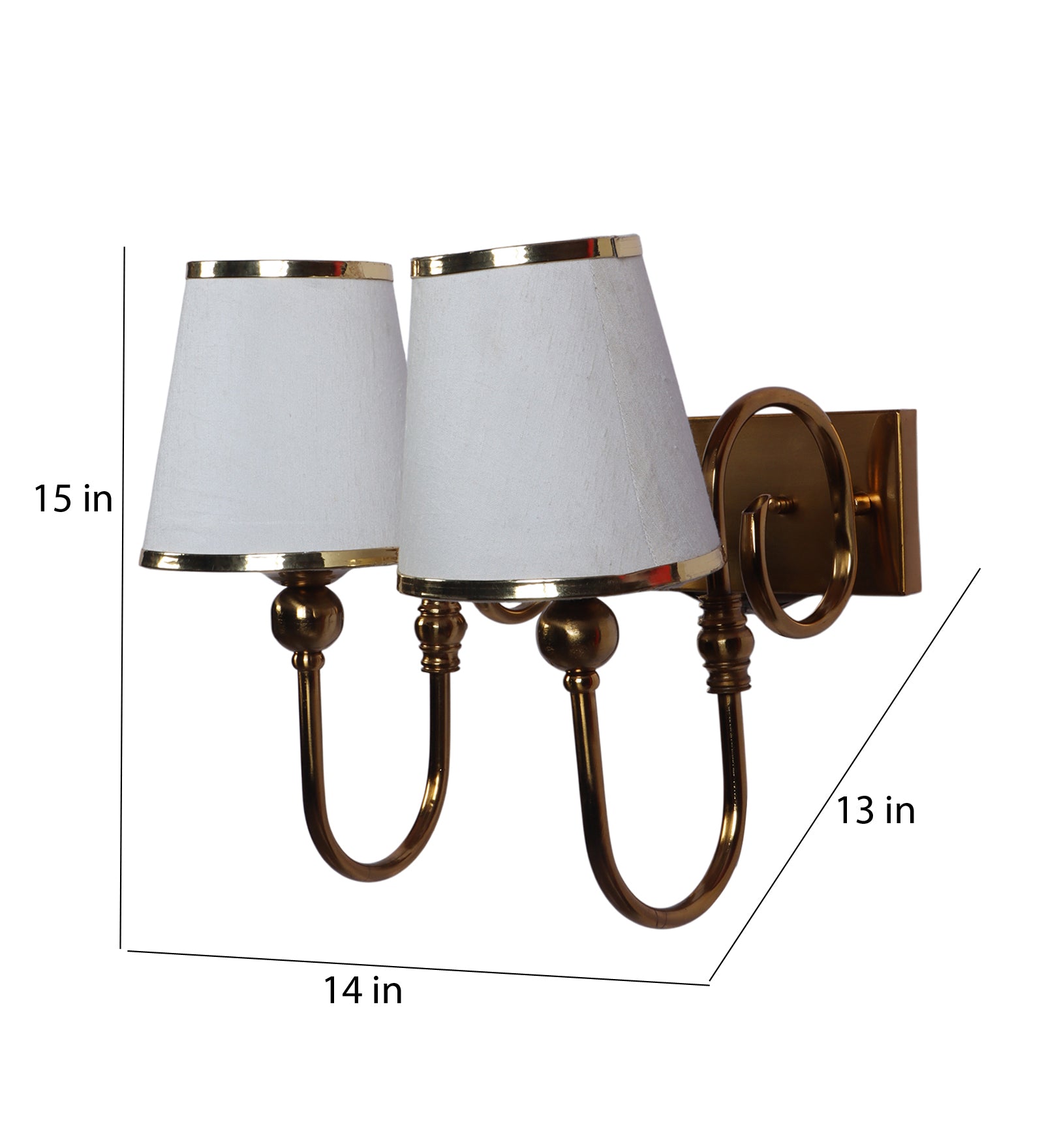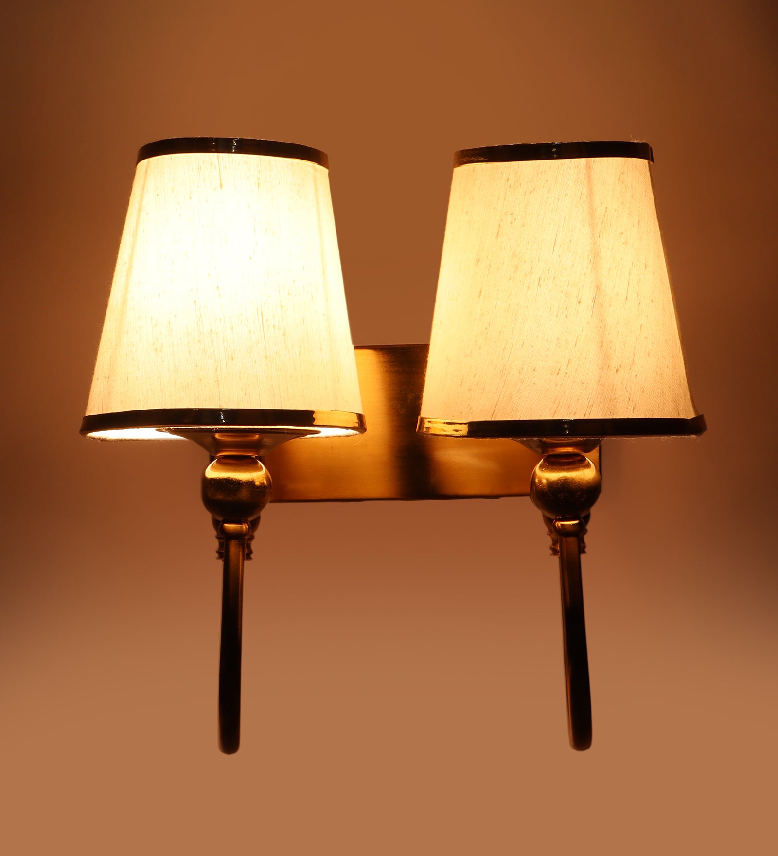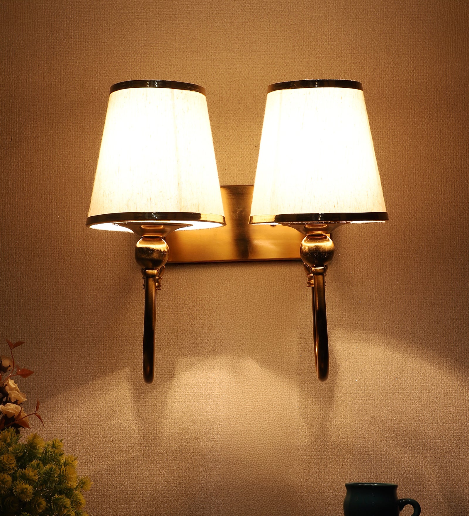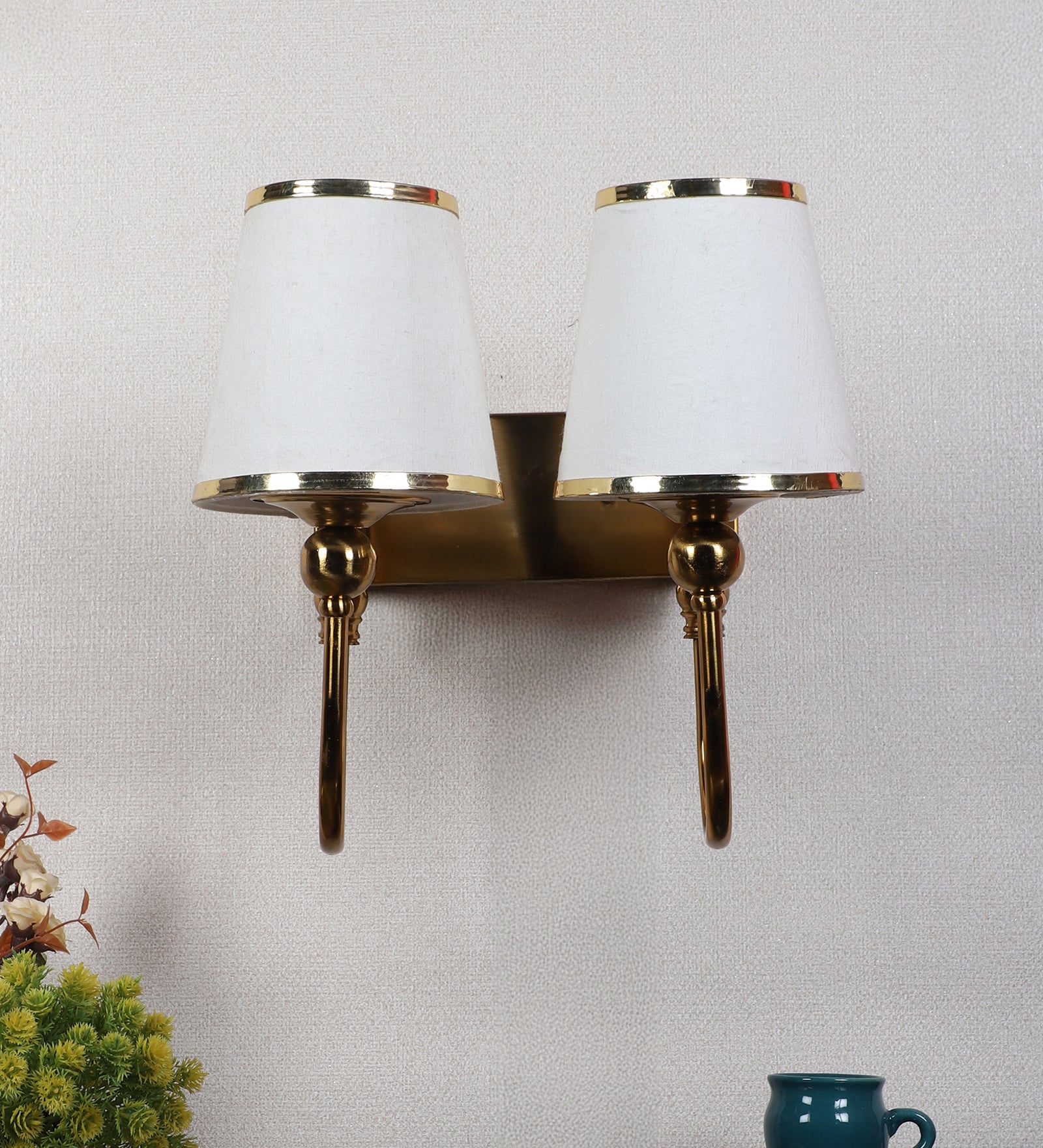 Description: This premium double wall light from Eliante by Jainsons Lights combines iron body with fabric shade in Gold and White tones. Designed with 40W/60W output and E27 holder holder, it blends elegance with practicality for modern interiors.