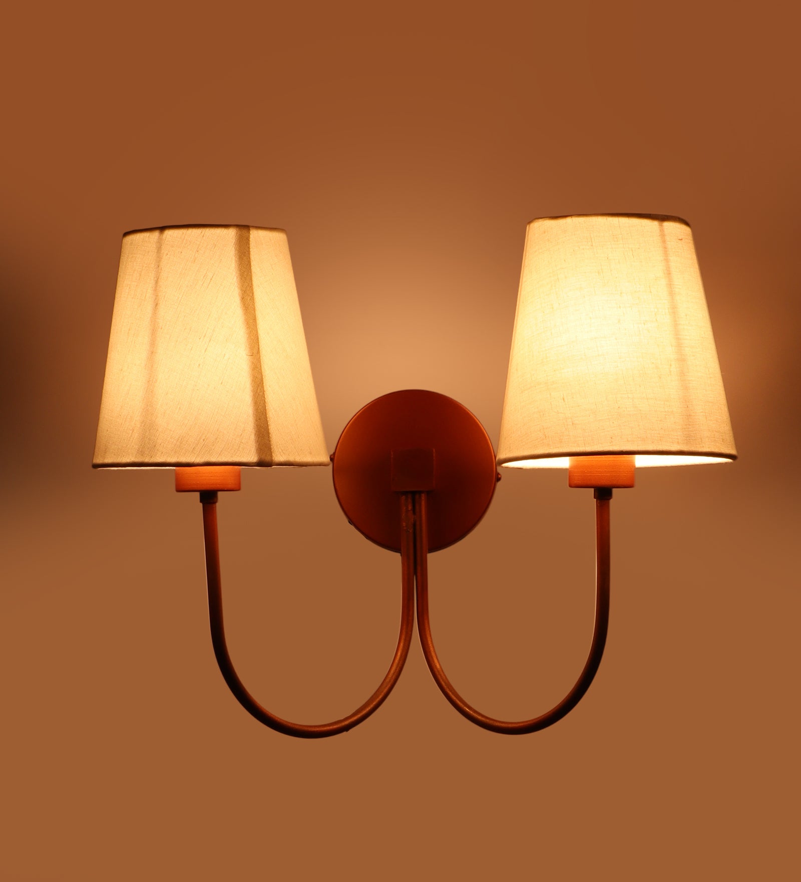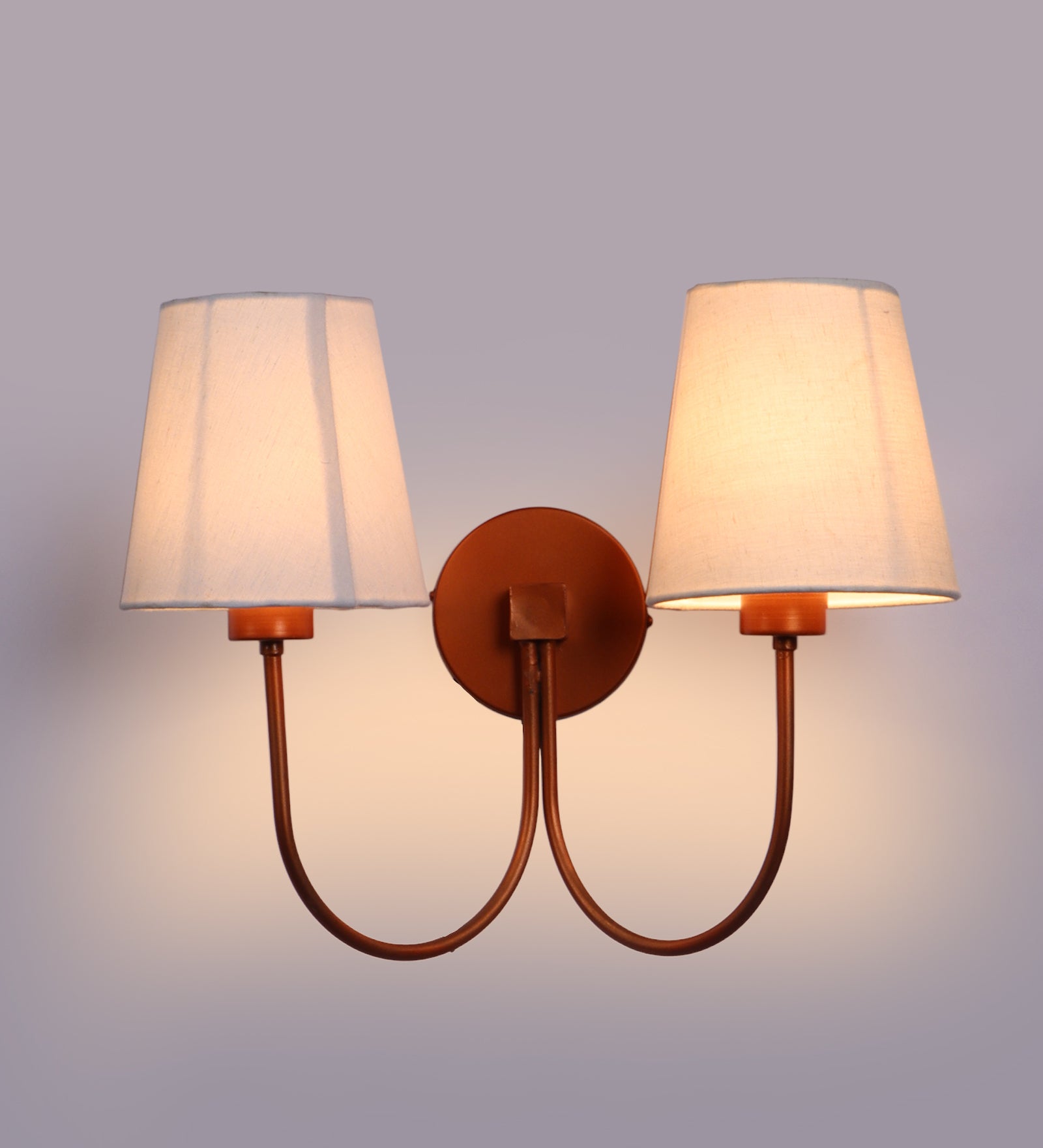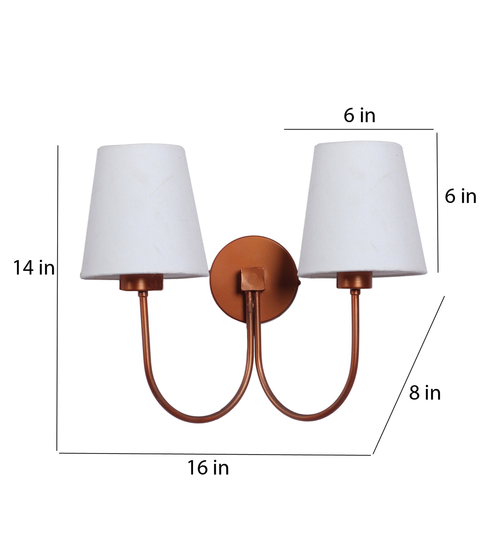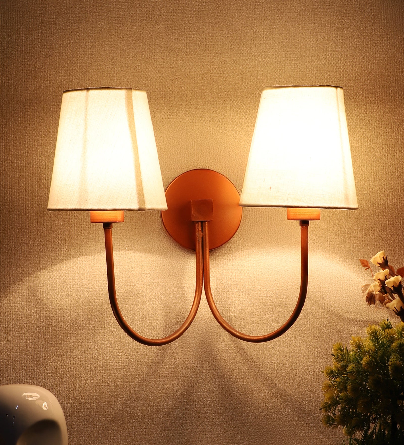 Description: This premium double wall light from Eliante by Jainsons Lights combines iron body with fabric shade in Copper and White tones. Designed with 40W/60W output and E27 holder holder, it blends elegance with practicality for modern interiors.