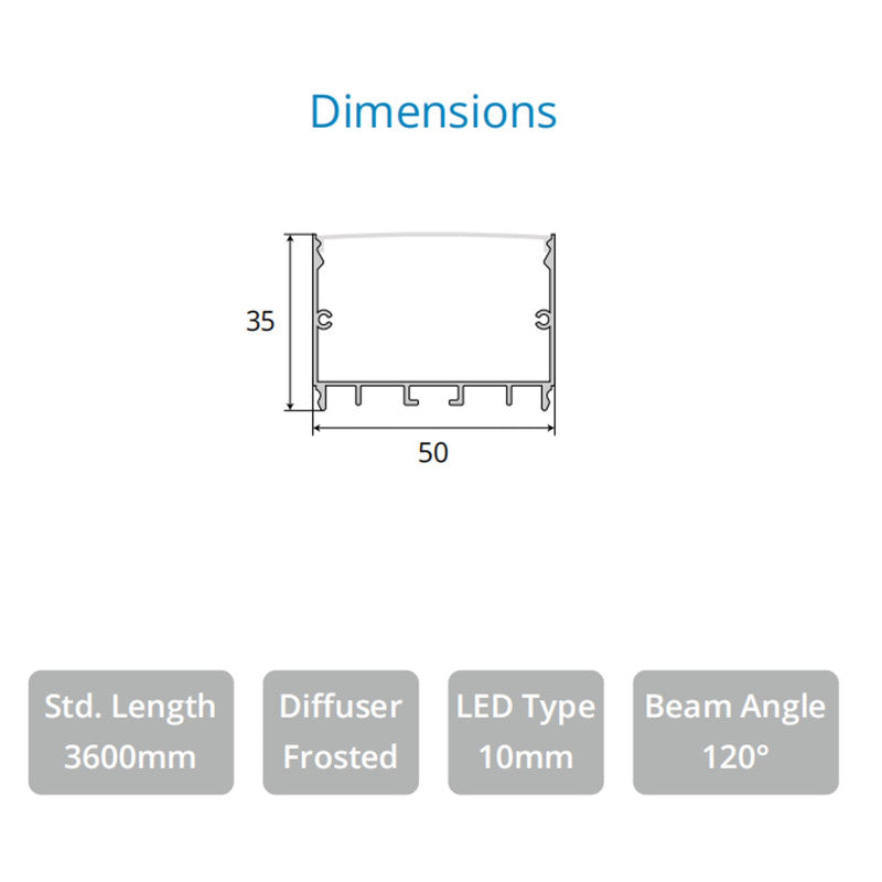 Product dimensions in mm W-50mm,H-35mm, L-3600mm