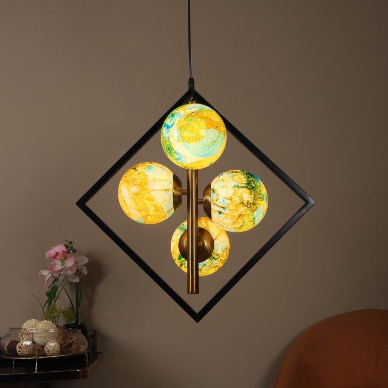 This stylish hanging light is a perfect blend of modern and traditional styles. It features a stunning black and gold iron base and four beautiful black and gold glass shades. The E27 holder allows you to easily install a variety of light bulbs to suit your lighting needs. The combination of the black and gold base and black and gold shades creates a bold and sophisticated look that is perfect for any room in your home. This hanging light is sure to become a statement piece in any space.