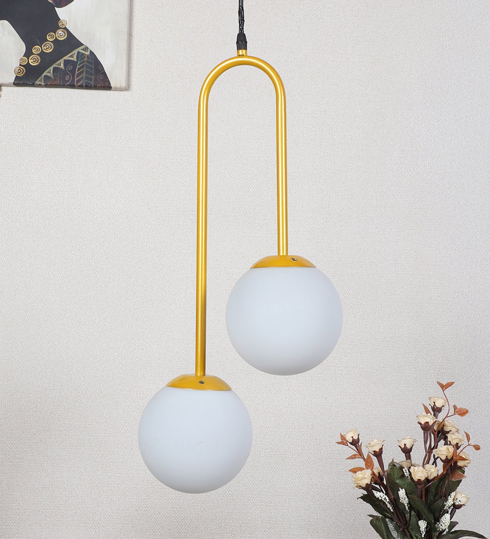 Description: This premium modern hanging lights from Eliante by Jainsons Lights combines iron body with glass shade in Gold and White tones. Designed with 40W/60W output and E27 holder holder, it blends elegance with practicality for modern interiors.