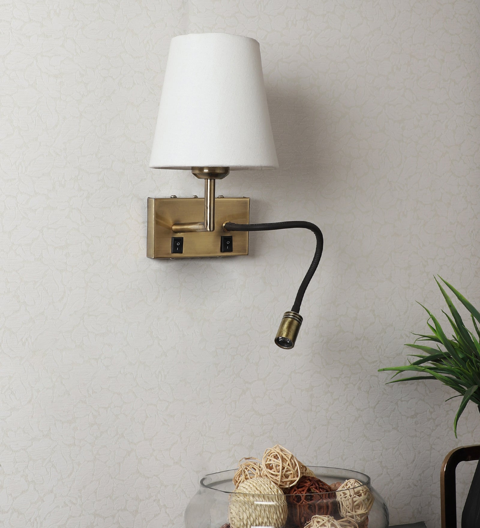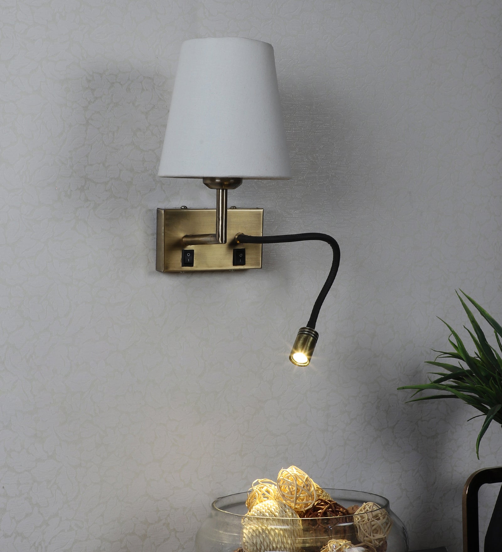Description: This premium glass ball wall lights from Eliante by Jainsons Lights combines iron body with glass shade in Antique Gold and White tones. Designed with 40W/60W output and E27 holder holder, it blends elegance with practicality for modern interiors.