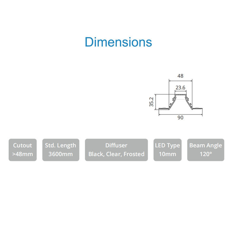Dimensions: L:3600mm x W:90 mm x H:35.2 mm