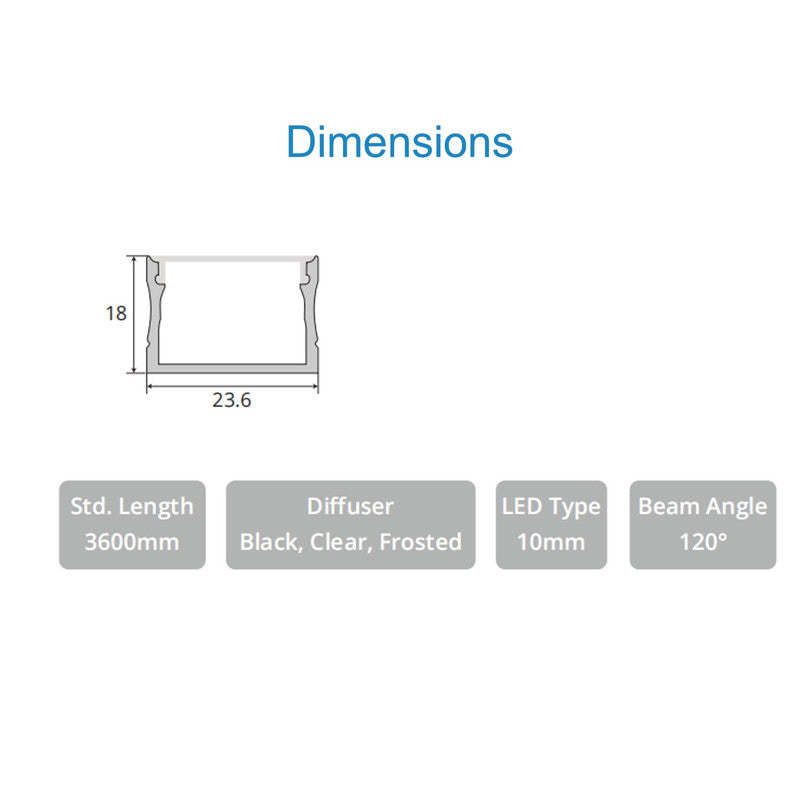 Dimensions: L:3600mm x W:23.6mm x H:18mm