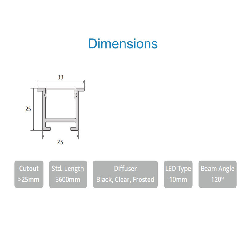 Product dimensions in mm W-32mmCO-25mmH-25mmL-3600mm