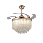 JS-LXR Crystal BLDC 42" Chandelier Fan SX0008 Gold Body & 4 Clear ABS Retractable Blades