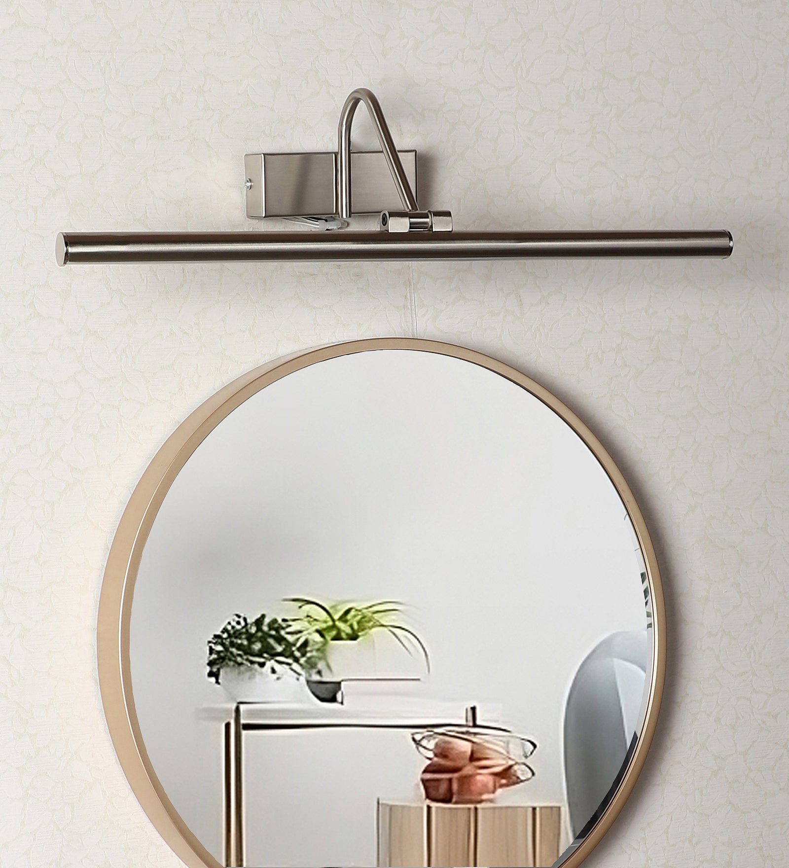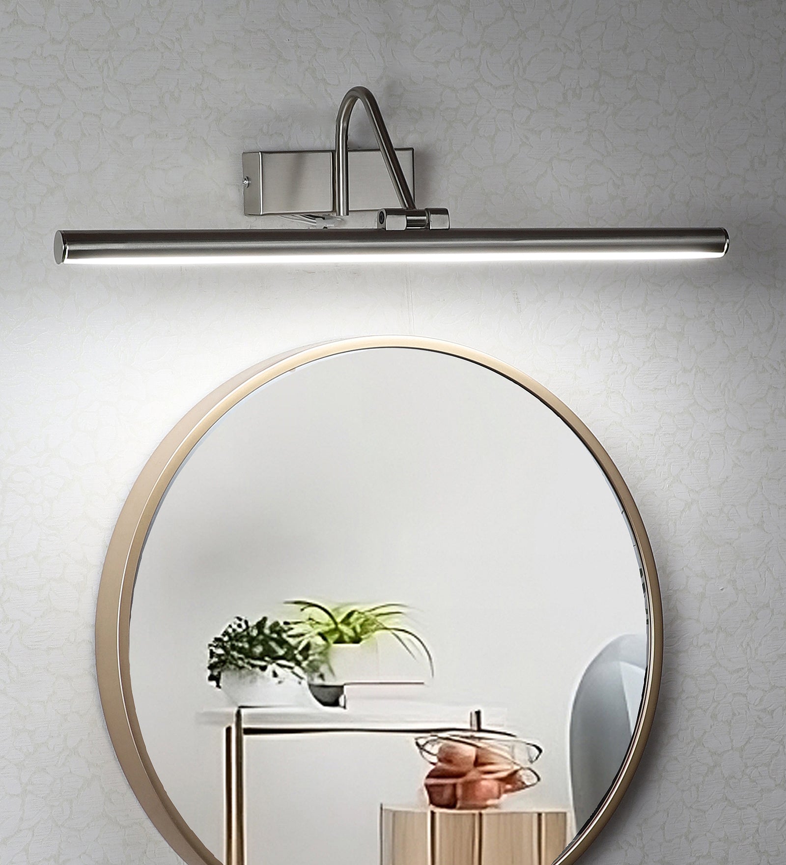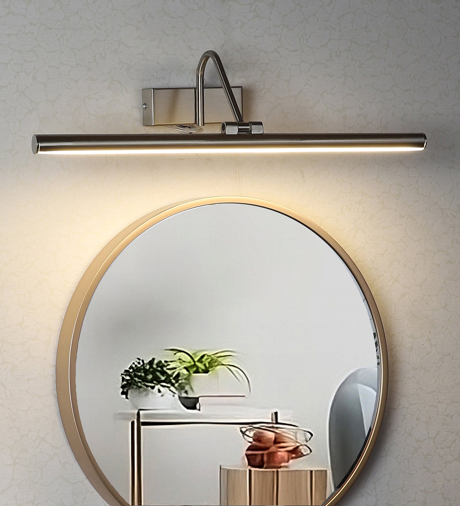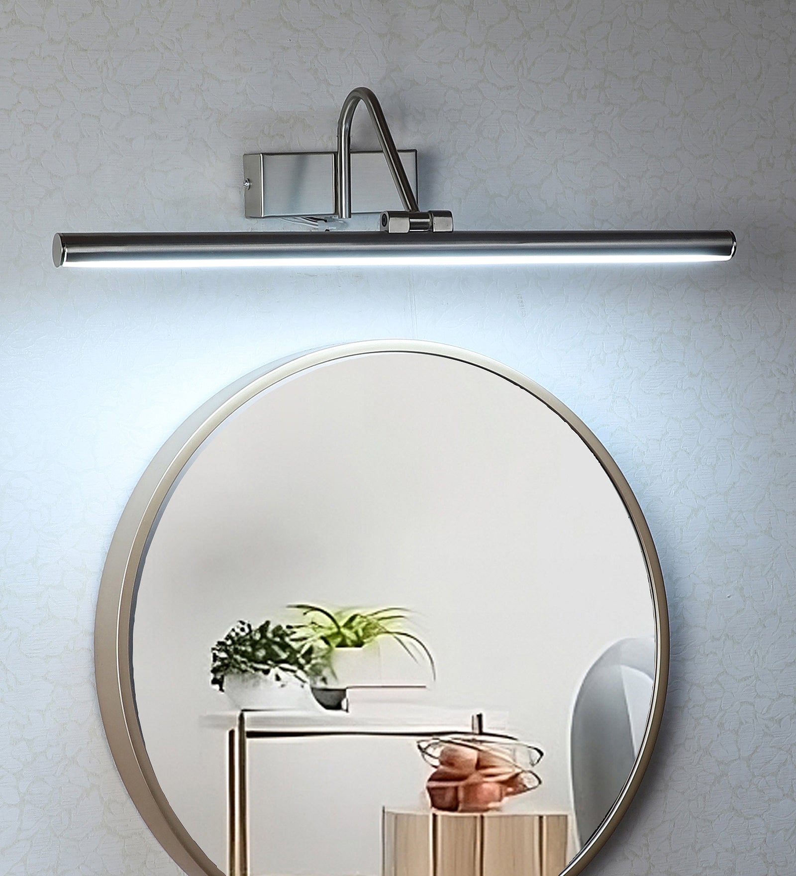 Description: This premium led mirror lights from Eliante by Jainsons Lights combines iron body with shade in Silver and Black tones. Designed with 40W/60W output and Inbuilt LED holder, it blends elegance with practicality for modern interiors.