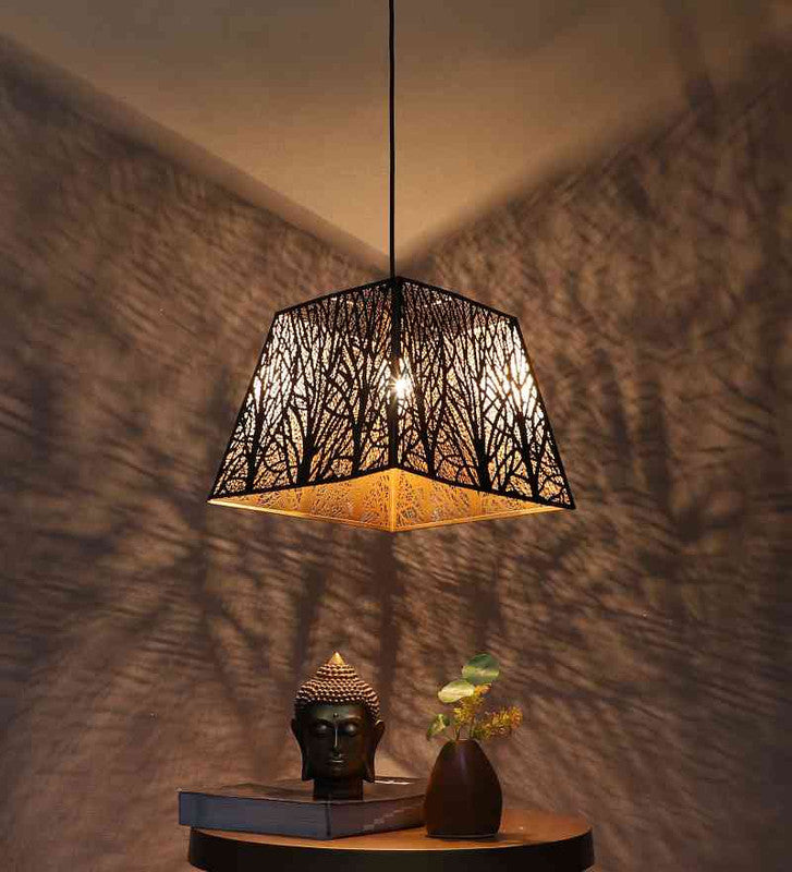 Shyvora Black and Gold Iron Chandelier | E27 holder | Included Bulb | Eliante by Jainsons Lights