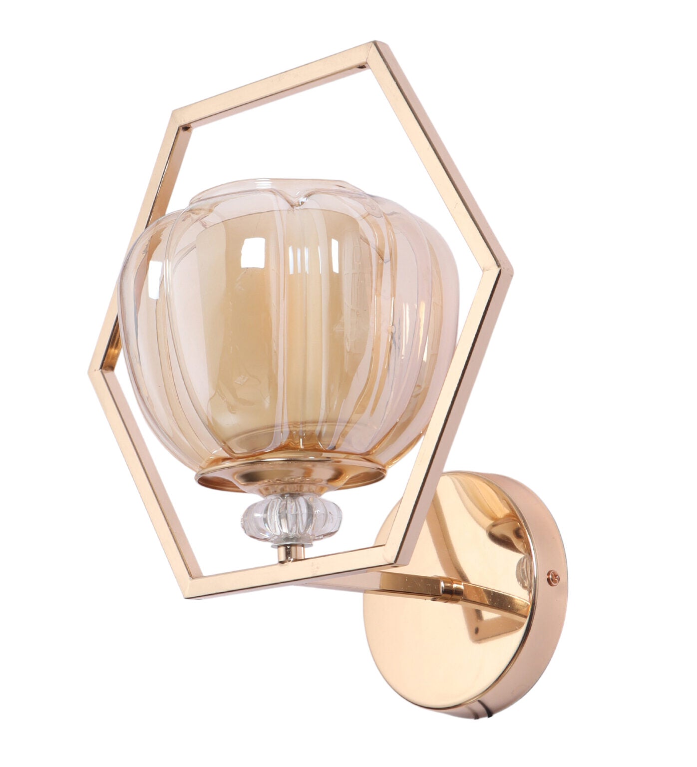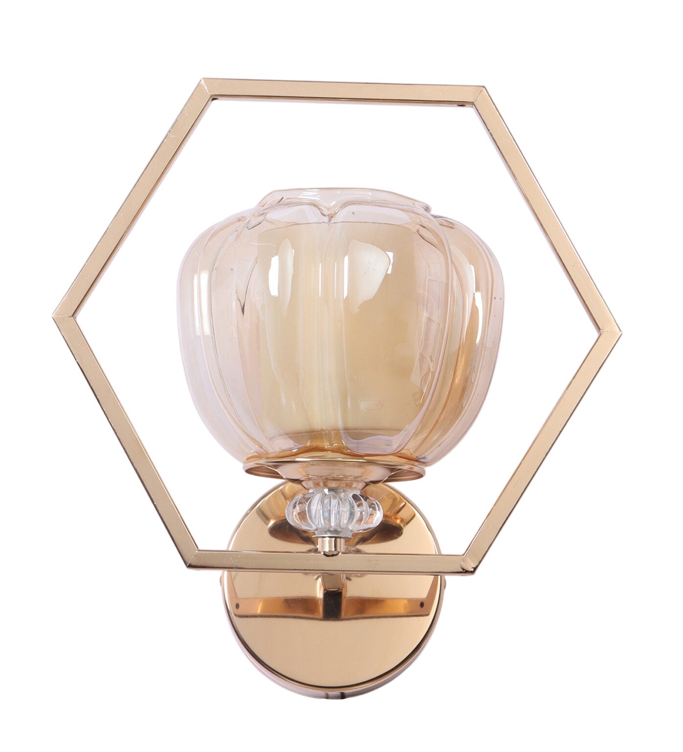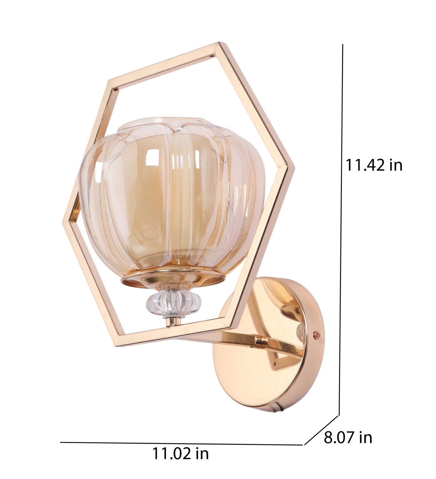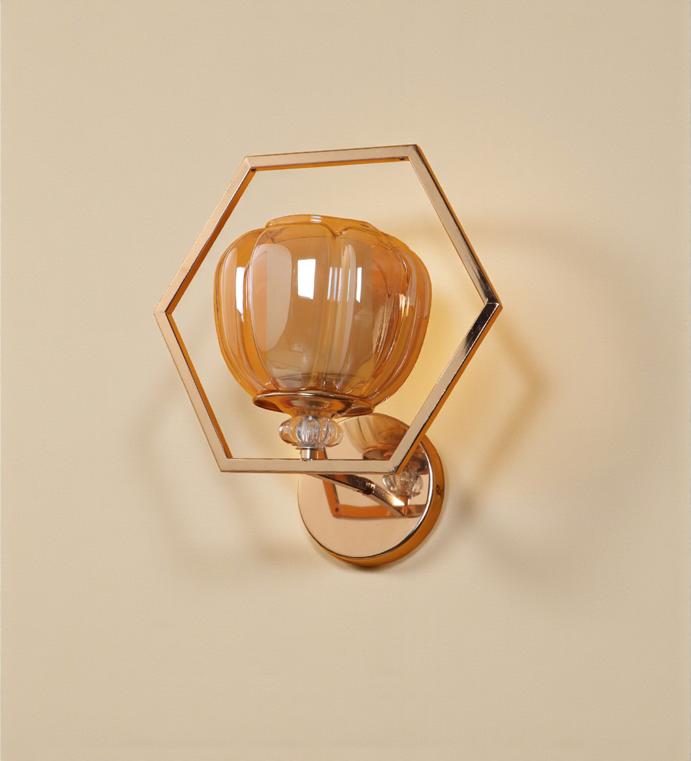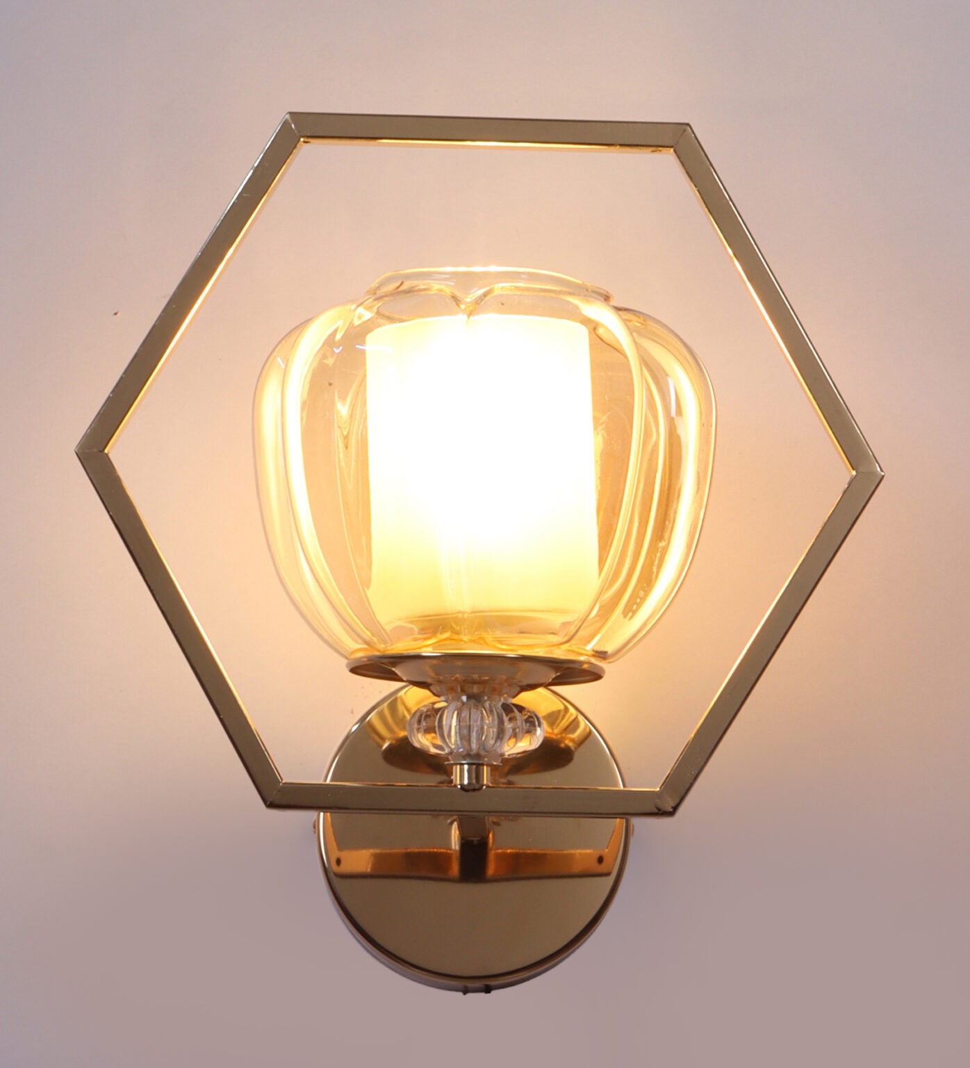 | Meta description | Hexagon Frame Glass Wall Light | Designer Gold Metal Wall Lamp for Bedroom & Dining Room | 3 Years Warranty | Free Bulb (Gold) with Metal body & glass shade by Eliante by Jainsons Lights. Ideal for bedroom, living room & hallway. |