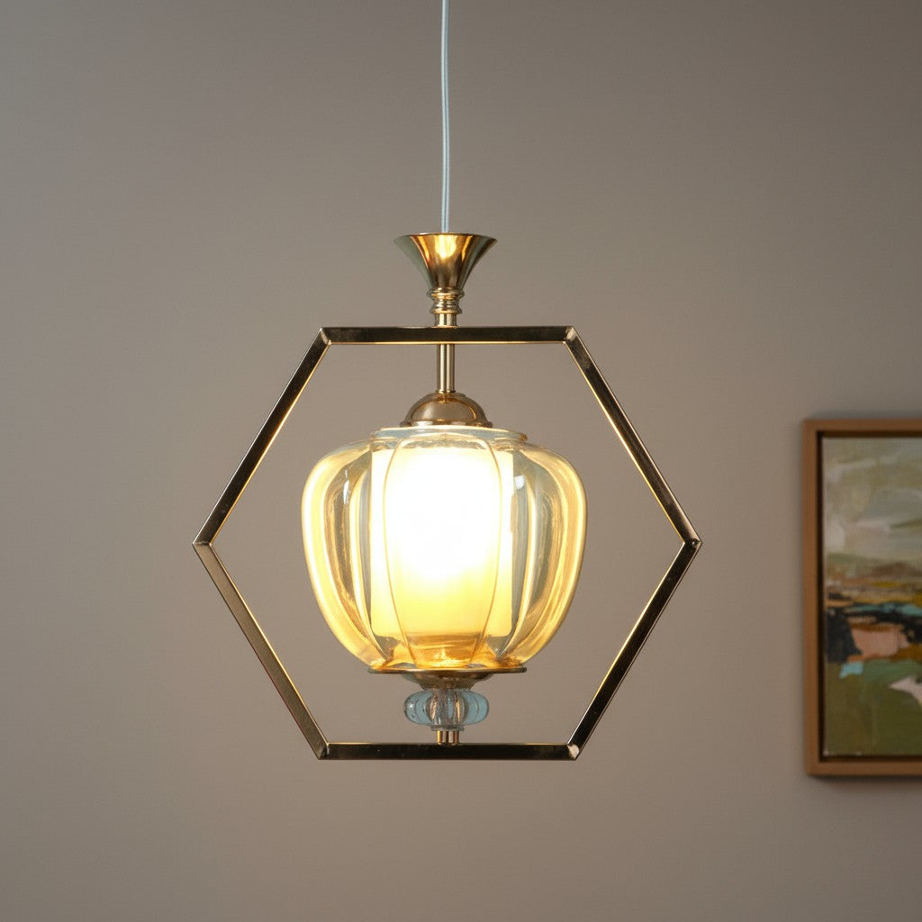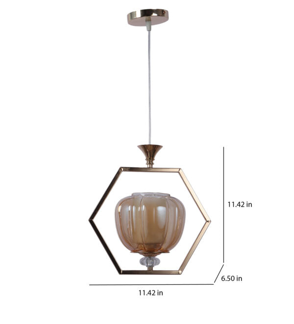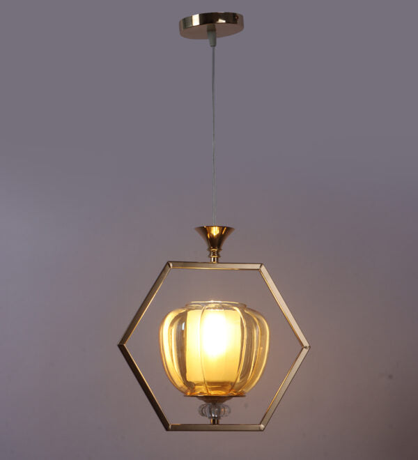 Eliante by Jainsons Lights - Hexora Modern Glass Hanging Light for Living Room & Dining Area | Metal Ceiling Lamp with Elegant Glass Shade | 3 Years Warranty | Free Bulb | Elegant Hanging Light for Bedroom & Living Room | 3 Years Warranty