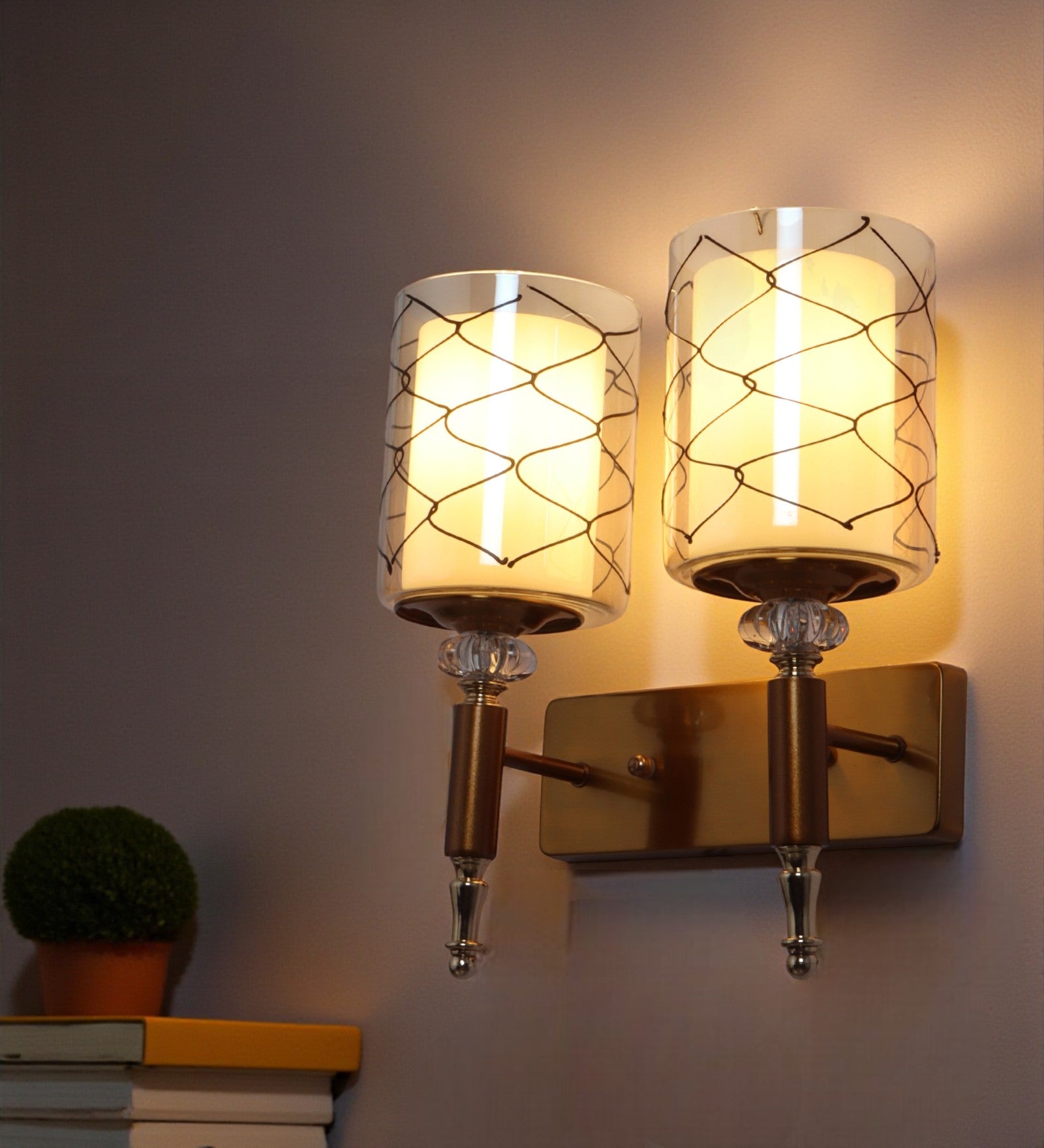 Eliante by Jainsons Lights - Lunara Dual Cylinder Glass Wall Light | Modern Twin Metal Body Wall Lamp for Living Room | 3 Years Warranty | Free Bulb | Elegant Wall Light for Bedroom & Living Room | 3 Years Warranty