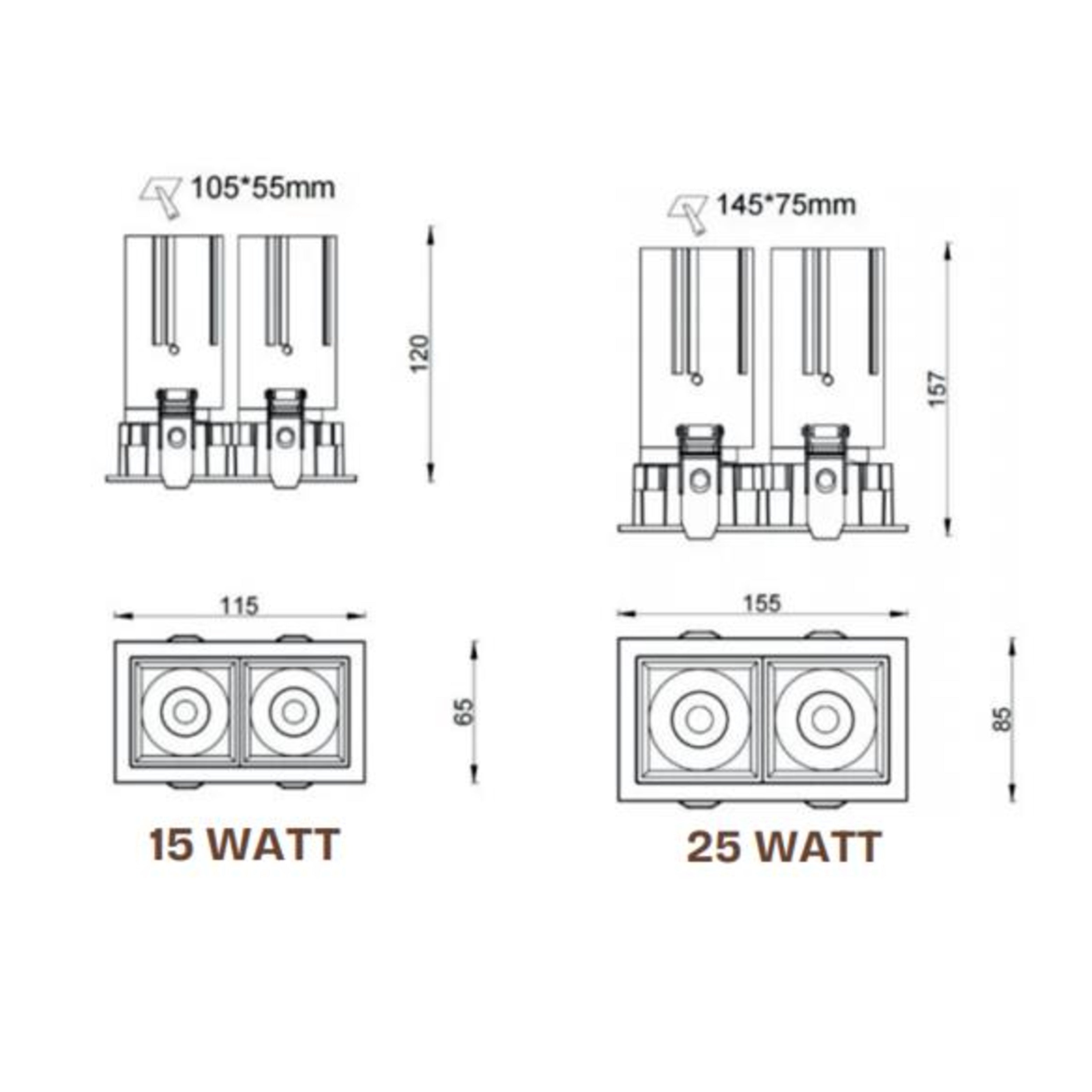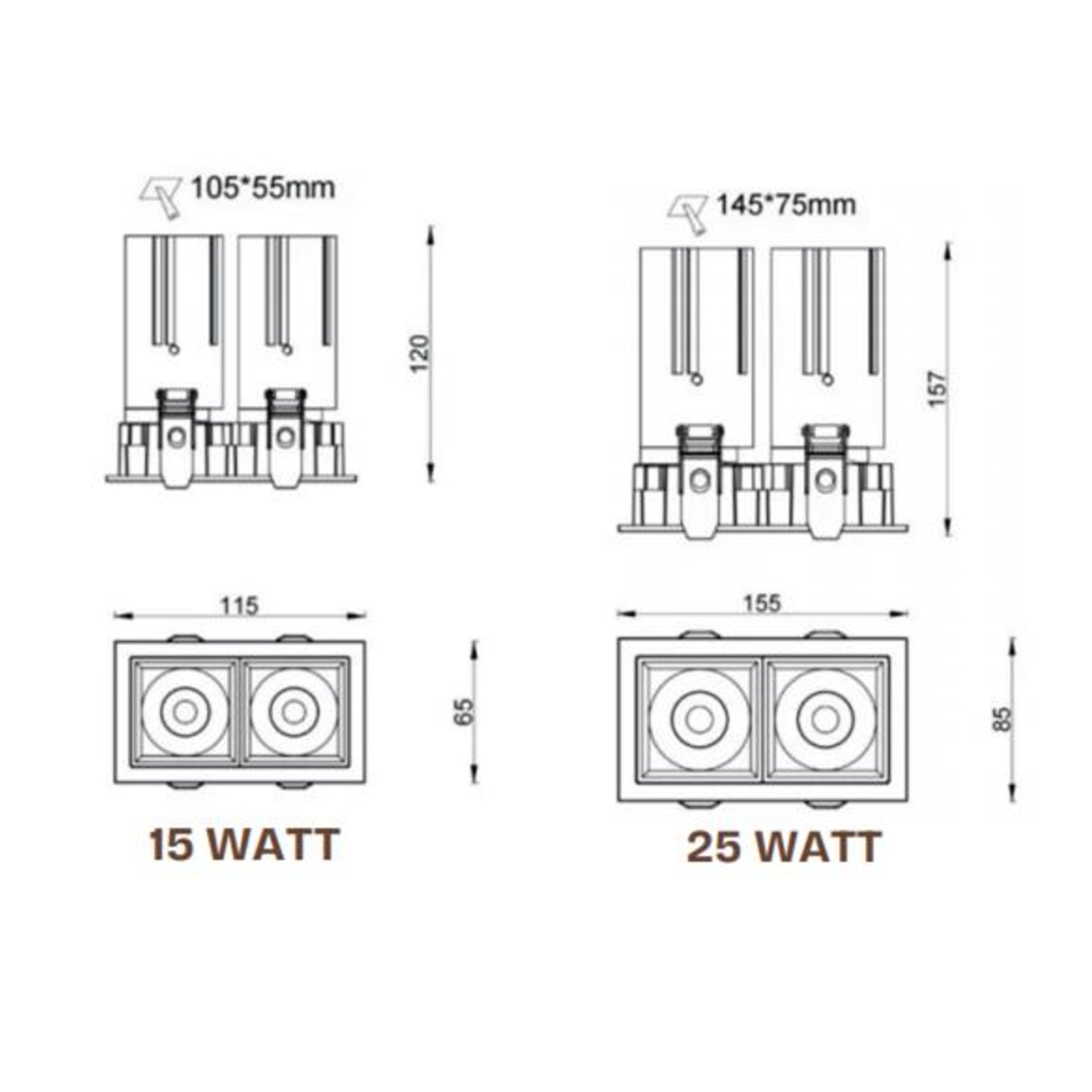 | 2×15W | 65 × 115 mm | 105 × 55 mm | 112 mm |