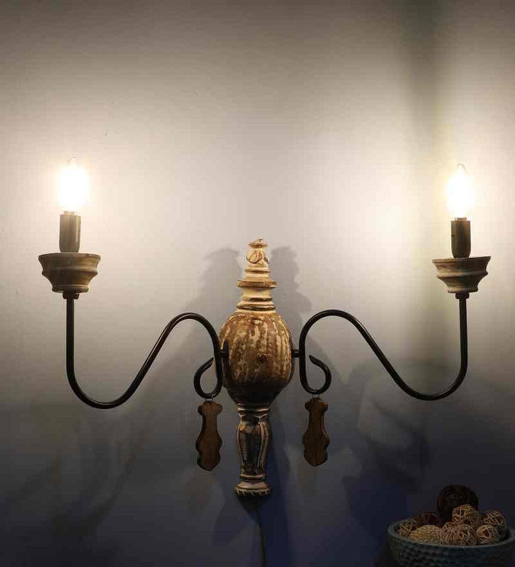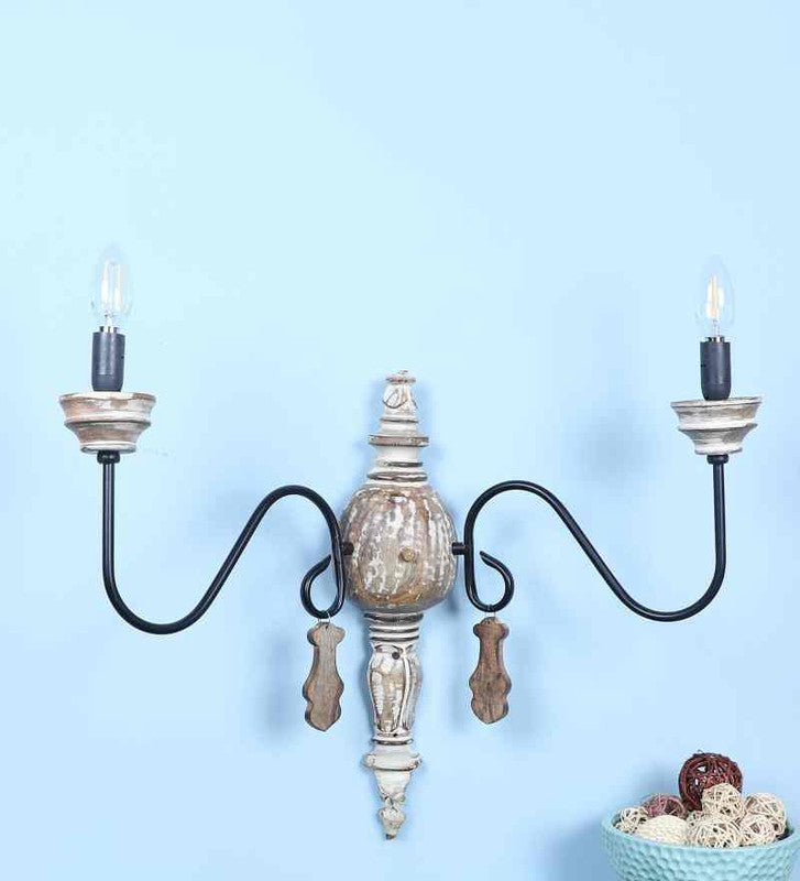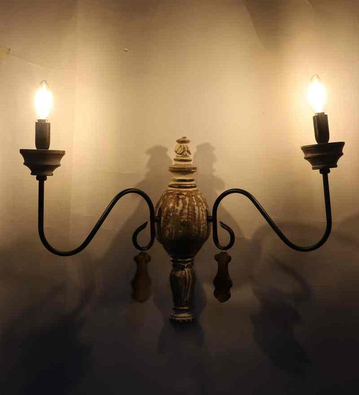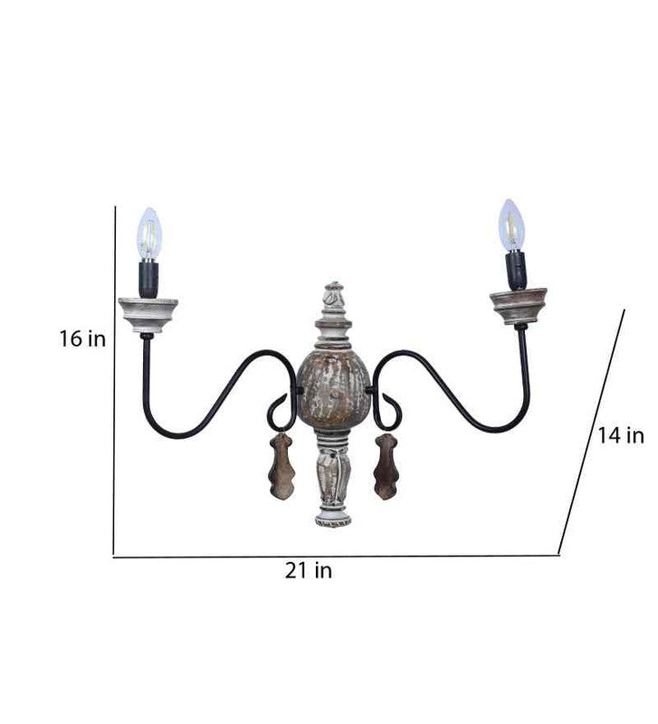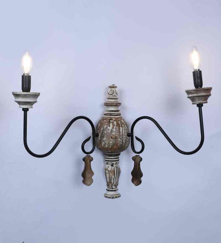 Opura Brown and Black Wood and Iron Wall Light | E14 holder | Included Bulb | Eliante by Jainsons Lights