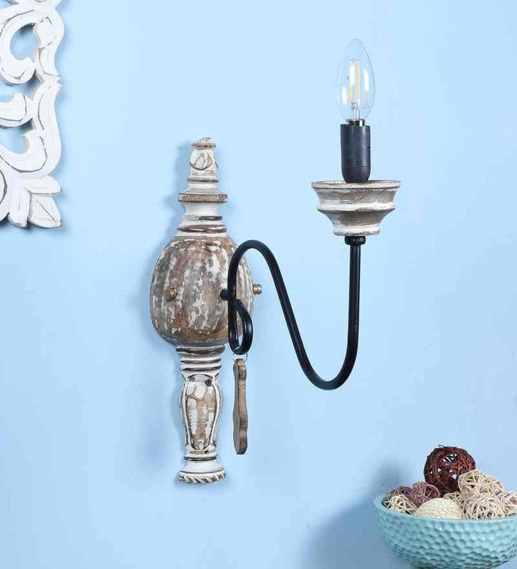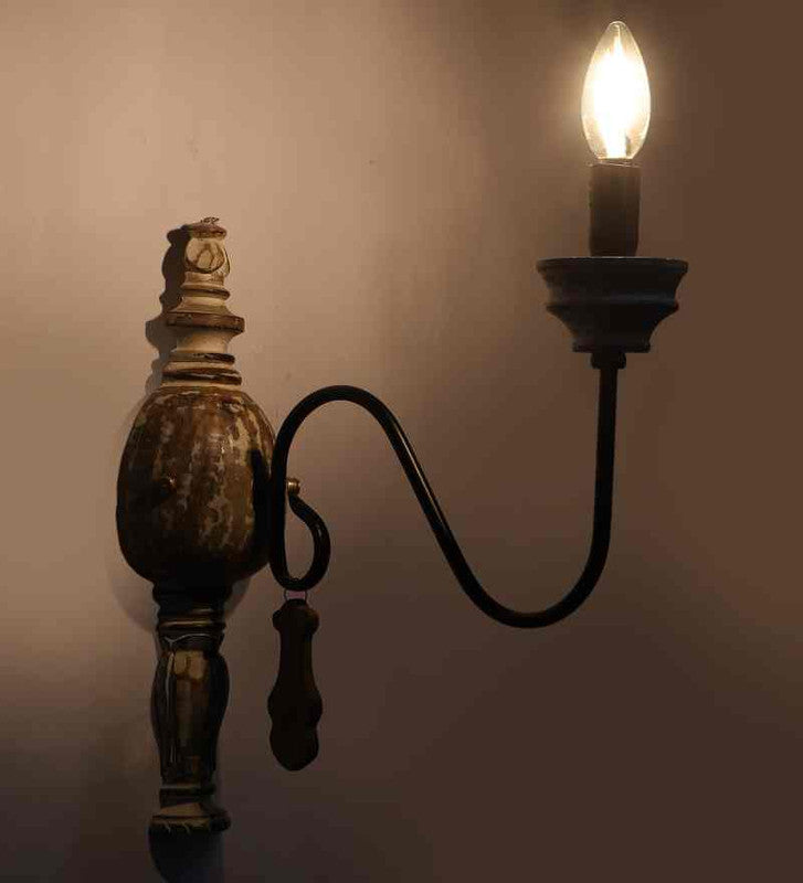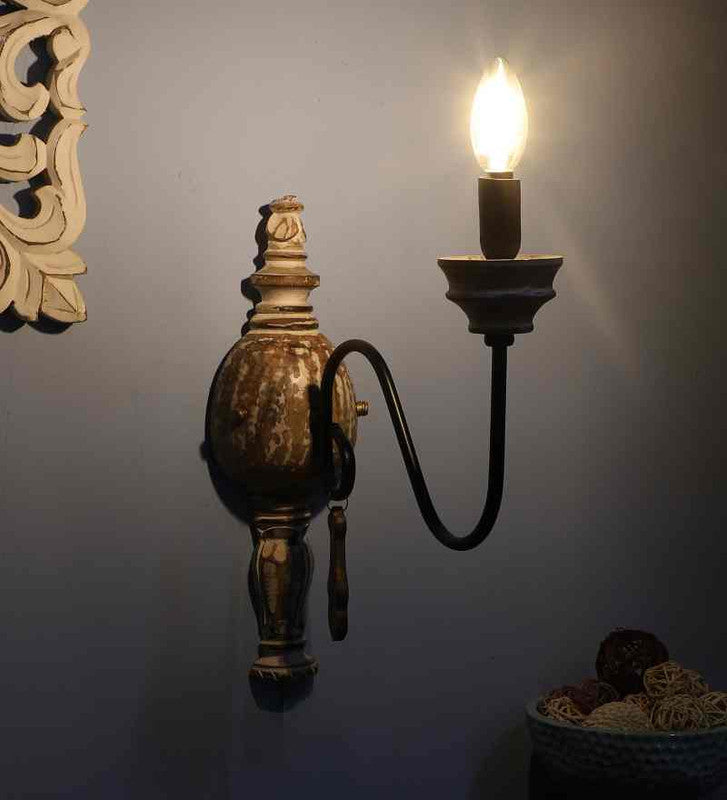 Vistara Brown and Black Wood and Iron Wall Light | E14 holder | Included Bulb | Eliante by Jainsons Lights