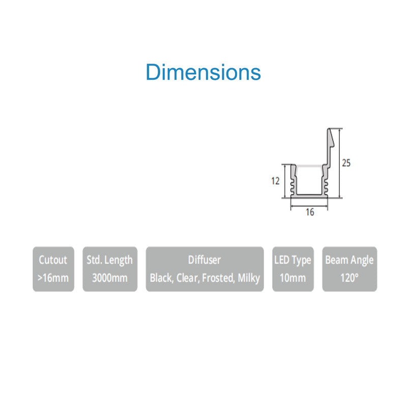 Dimensions: L:3000mm x W:16mm x H:25mm