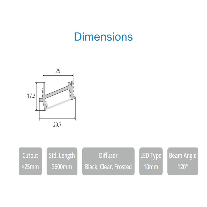 Product dimensions in mm W-30mmH-18mmL-3600mm