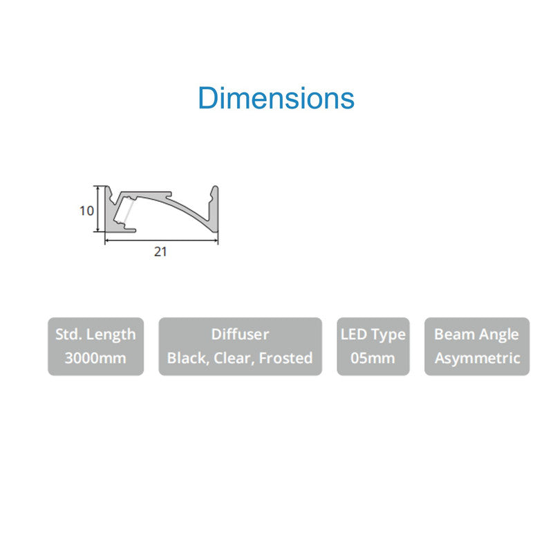 Product dimensions in mm W-21mmH-10mmL-3000mm
