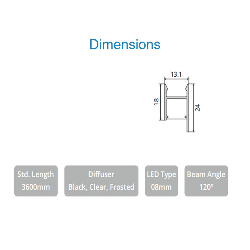 | Product dimensions in mm | W-13mmH-18mmEX-24mmL-3000mm |