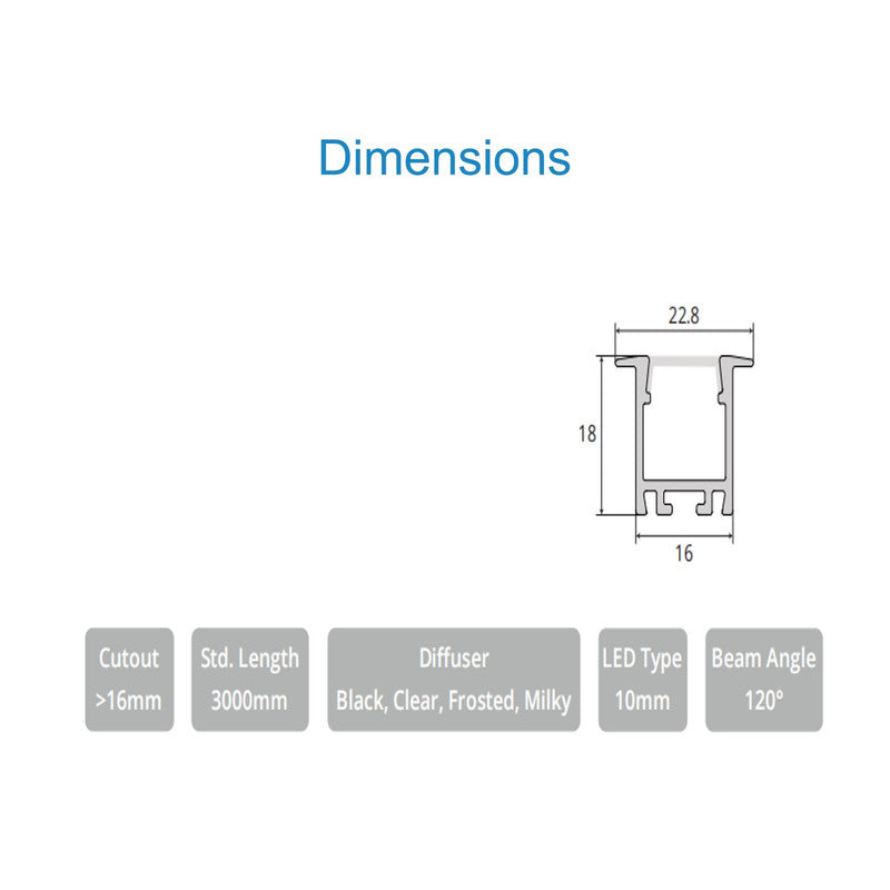 | Product dimensions in mm | W-22.8mmCO;16mmH-18mmL-3000mm |