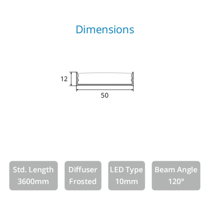 Product dimensions in mm W-50mm,H-12mm, L-3600mm