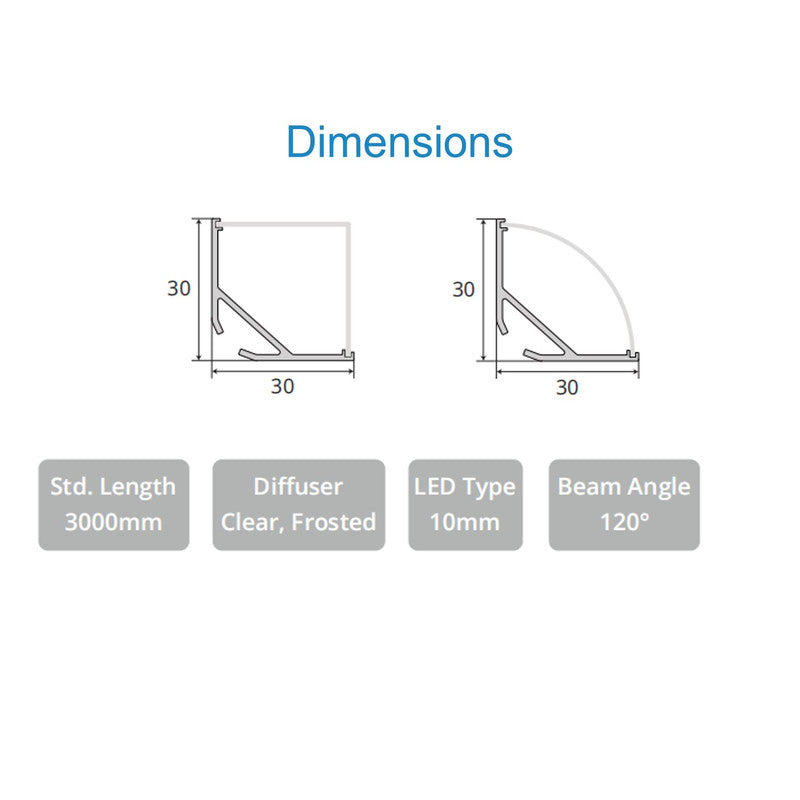 Product dimensions in mm L:3000mm x W:30mm x H:30mm