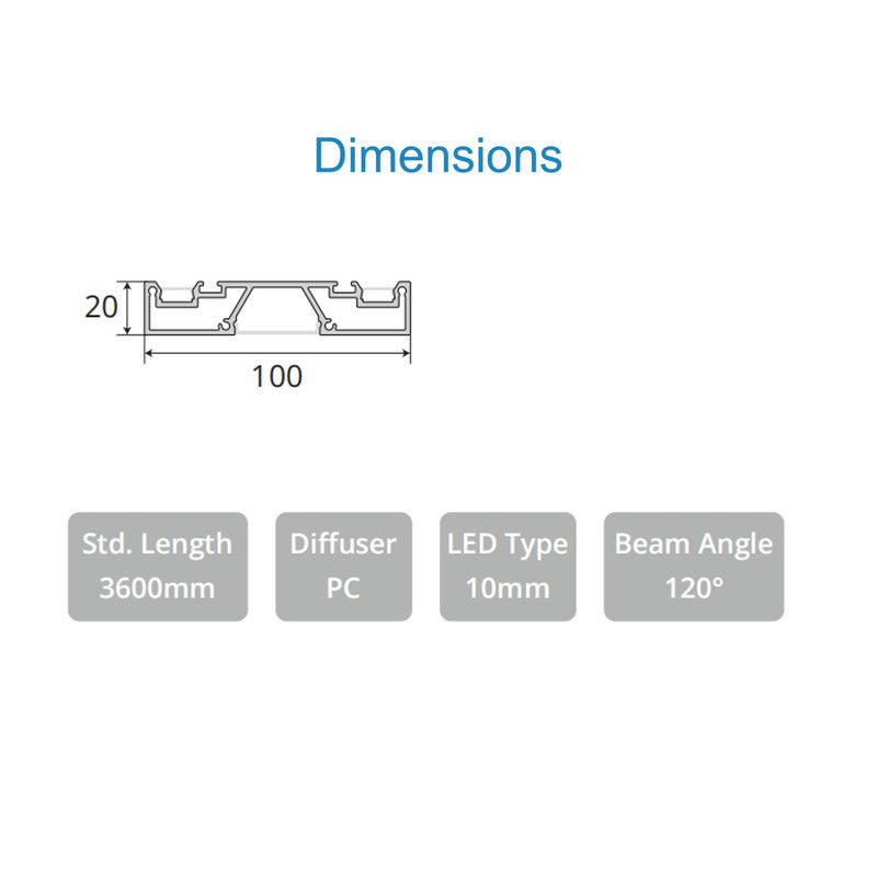 | Product dimensions in mm | W-100mmH-20mmL-3600mm |