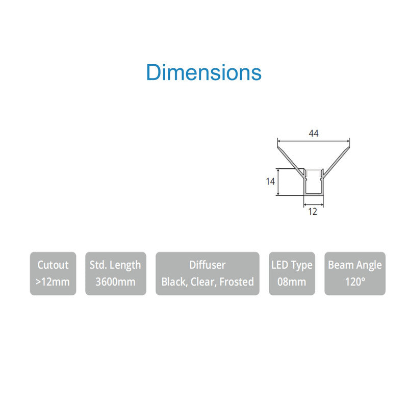 Product dimensions in mm W-12mmH-14mmL-3600mm