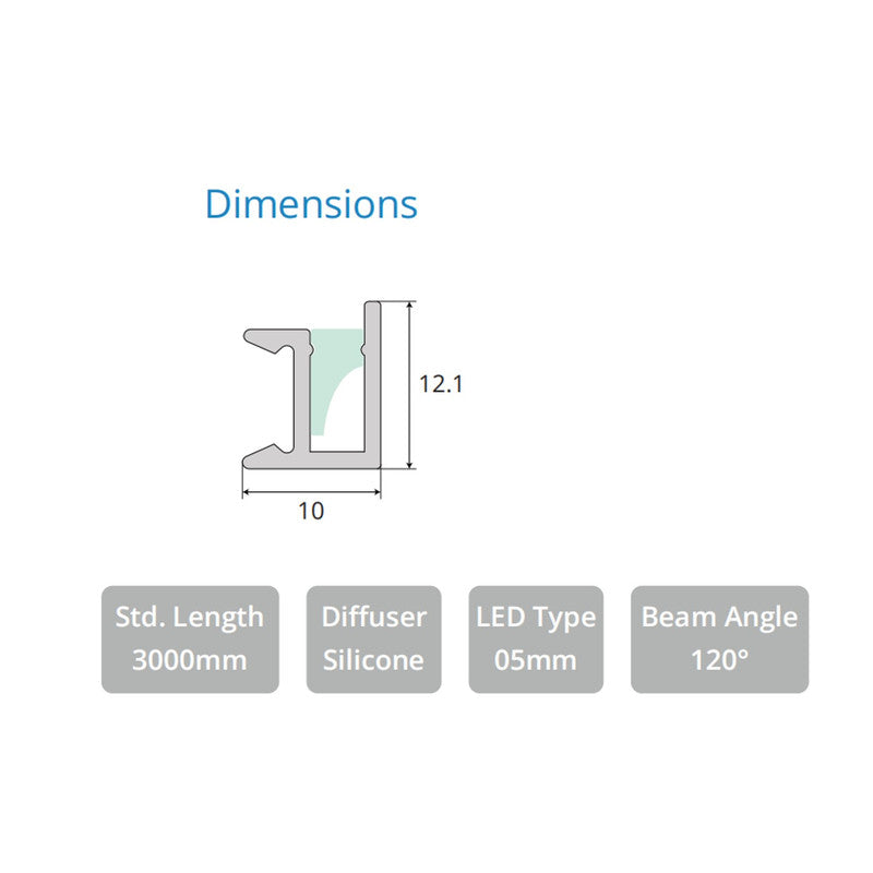 Dimensions: L:3000mm x W:10mm x H:12.1mm