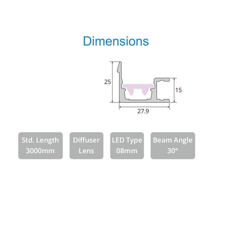 Dimensions: L:3000mm x W:22.9mm x H:25mm