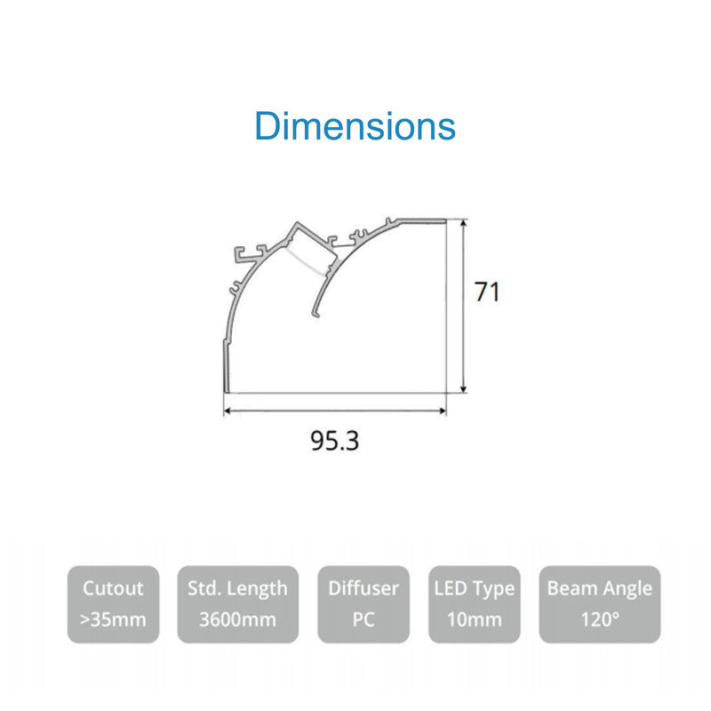 Dimensions: L:3600mm x W:95.3mm x H:71mm
